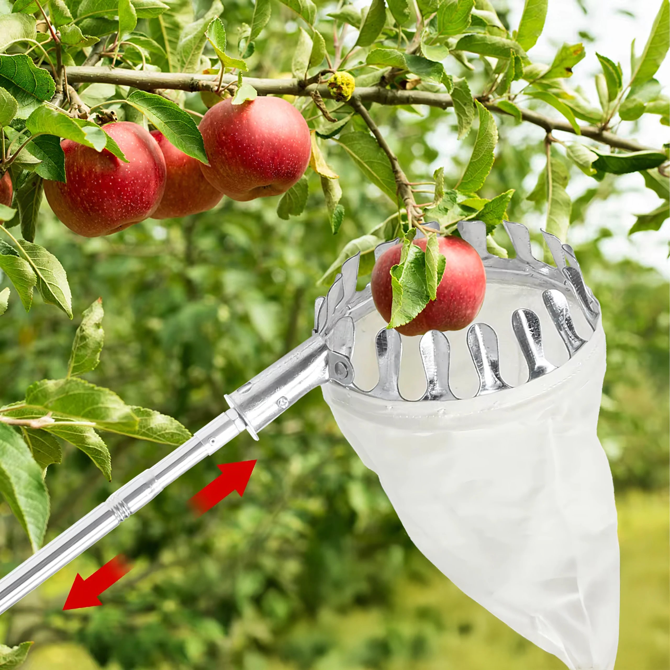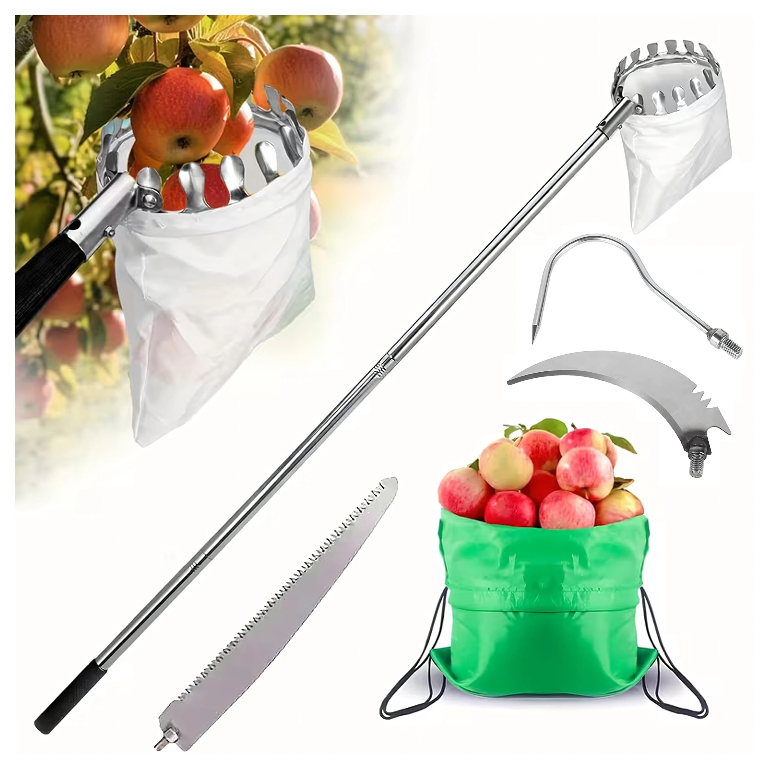 Teleskopický česáček na ovoce RealG RC-K-2213 je praktická pomůcka pro bezpečný a pohodlný sběr plodů přímo ze země. Díky teleskopické násadě s délkou až 400 cm se snadno dostanete i do vyšších pater stromů, aniž by bylo nutné používat žebřík. Sada obsahuje 4 koncovky, které umožní přizpůsobit nástroj různým situacím při sklizni.