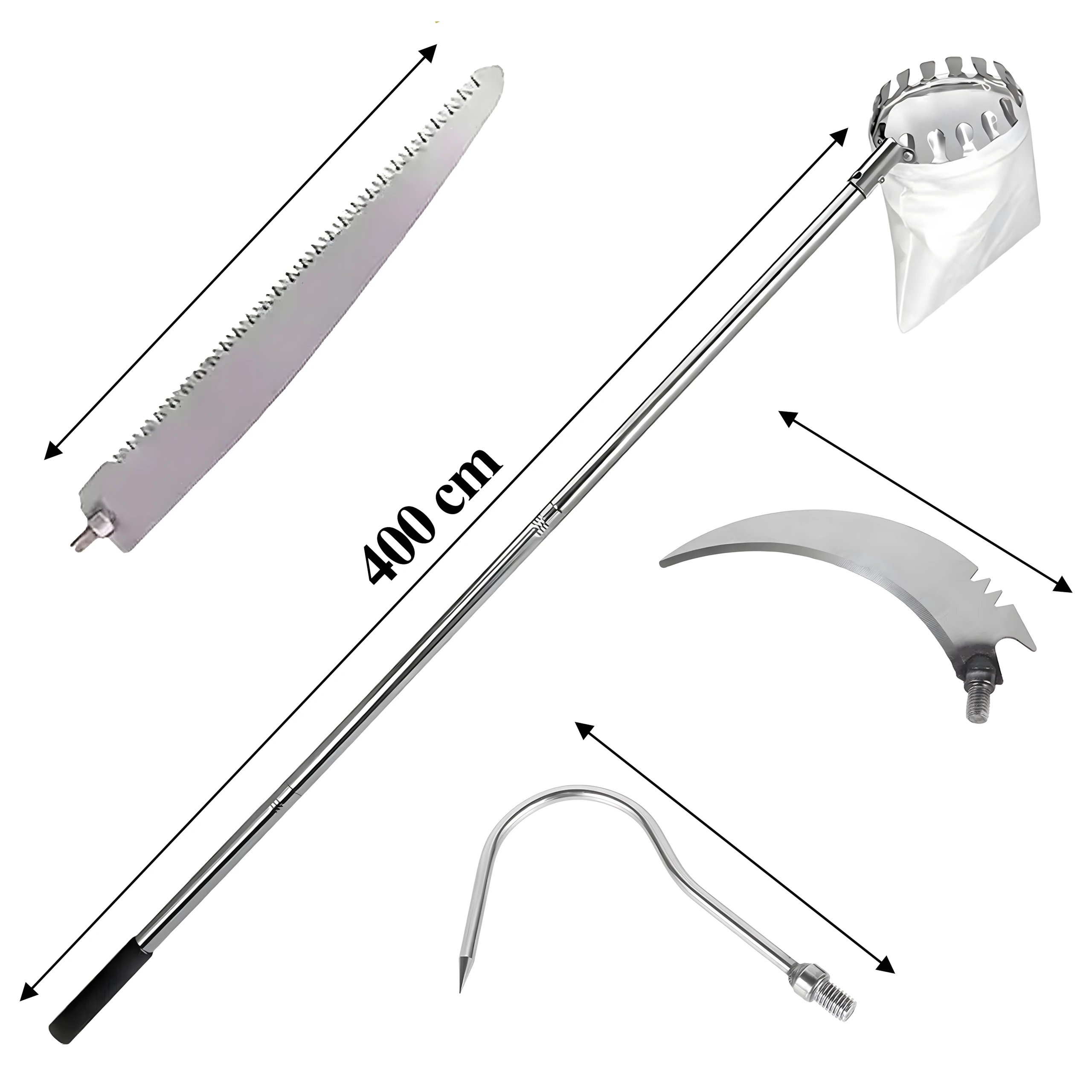Teleskopický česáček na ovoce s 4 nástavci a dosahem až 4 m.
