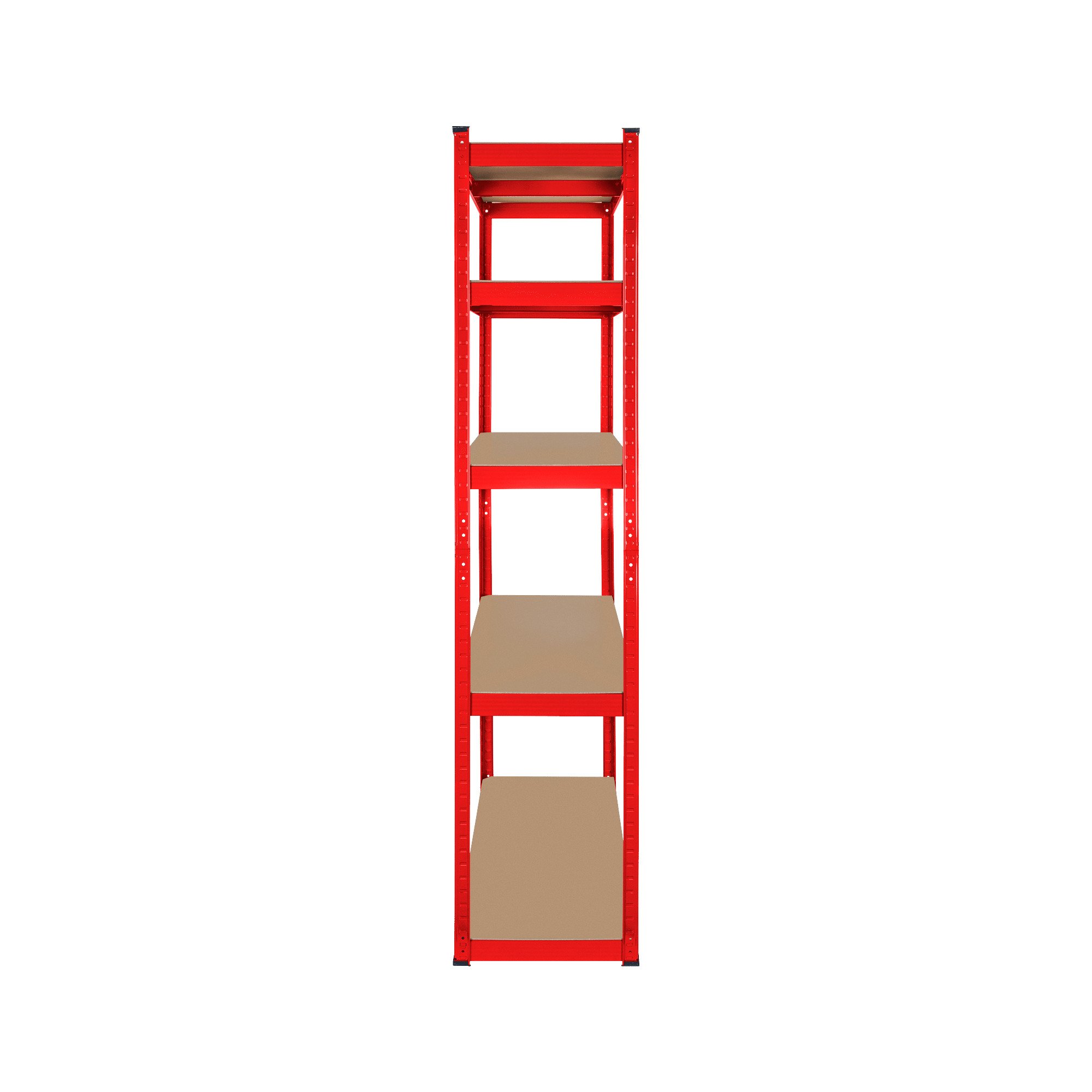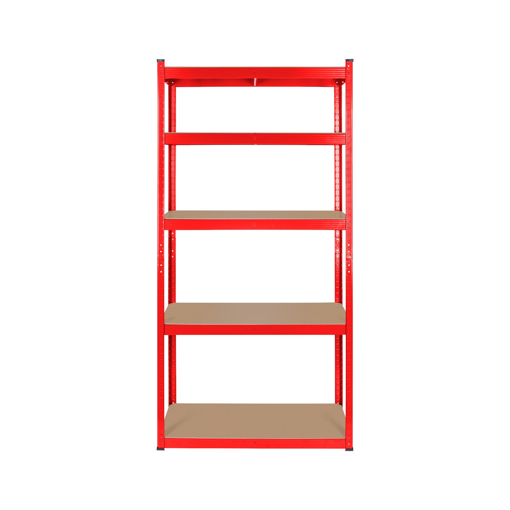 Rebel RB-1251 Kovový skladovací regál, 5 polic, 180 x 90 x 40 cm, 750 kg, červená