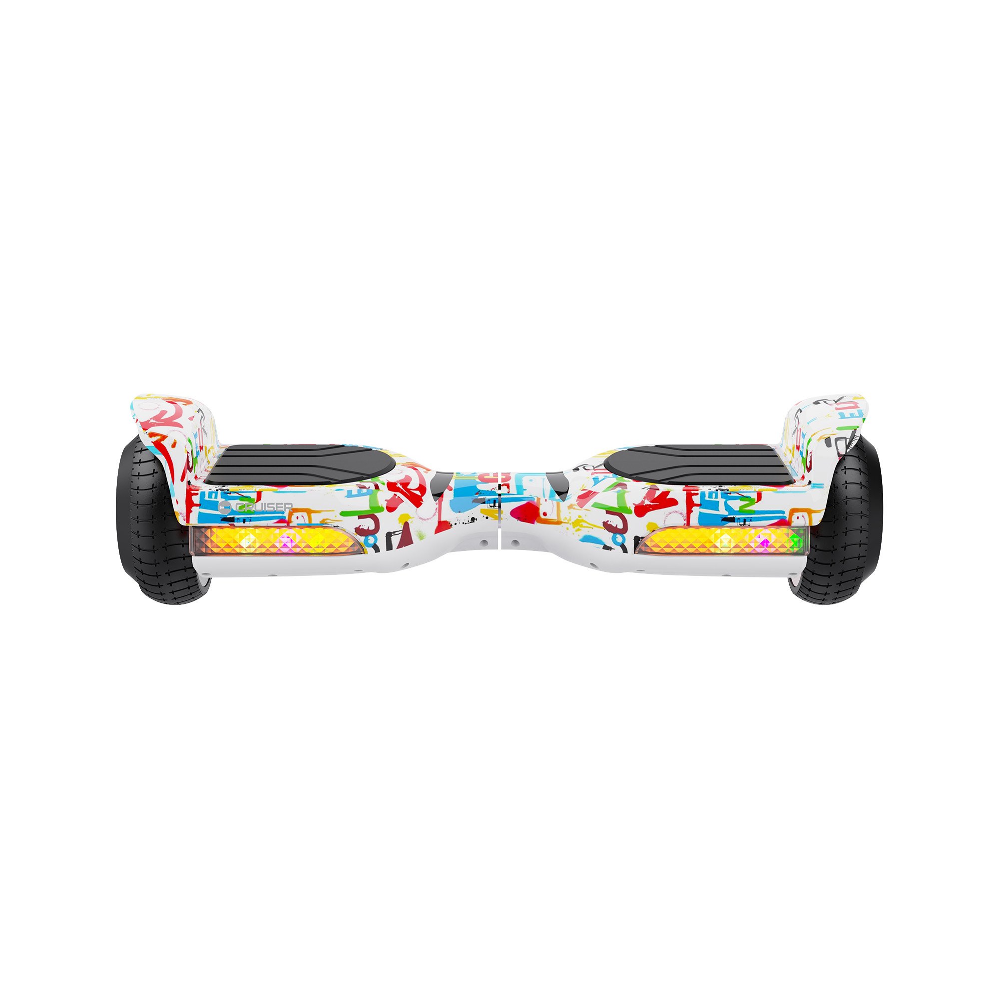 Elektrický hoverboard Cruiser Paint je vybaven velkými 6,5palcovými koly, z nichž každé je poháněno 120W motorem. To mu umožňuje dosáhnout rychlosti až 10 km/h a, co je důležitější, zdolávat kopce s maximálním úhlem sklonu až 8°.