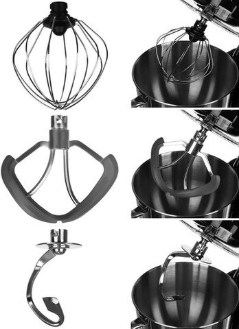 Sada obsahuje nástavce pro přípravu pokrmů. K dokonalému spojení ingrediencí těsta slouží míchadlo se silikonovými žebry. Hák byl navržen tak, aby se dobře dělalo kynuté těsto a šlehací metla, která slouží ke šlehání lehkých surovin jako je šlehačka nebo bílky.