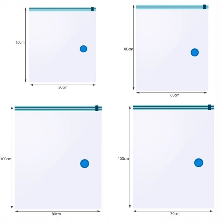 Sada 10 vakuových sáčků je opakovaně použitelná. Uložené věci jsou dokonale chráněny proti prachu, špíně, vodě, vlhkosti a molům. Oblečení uložené bez přístupu vzduchu vypadá déle jako nové. K odsávání vzduchu stačí obyčejný vysavač. Naše sada Vám umožní ušetřit spoustu místa.