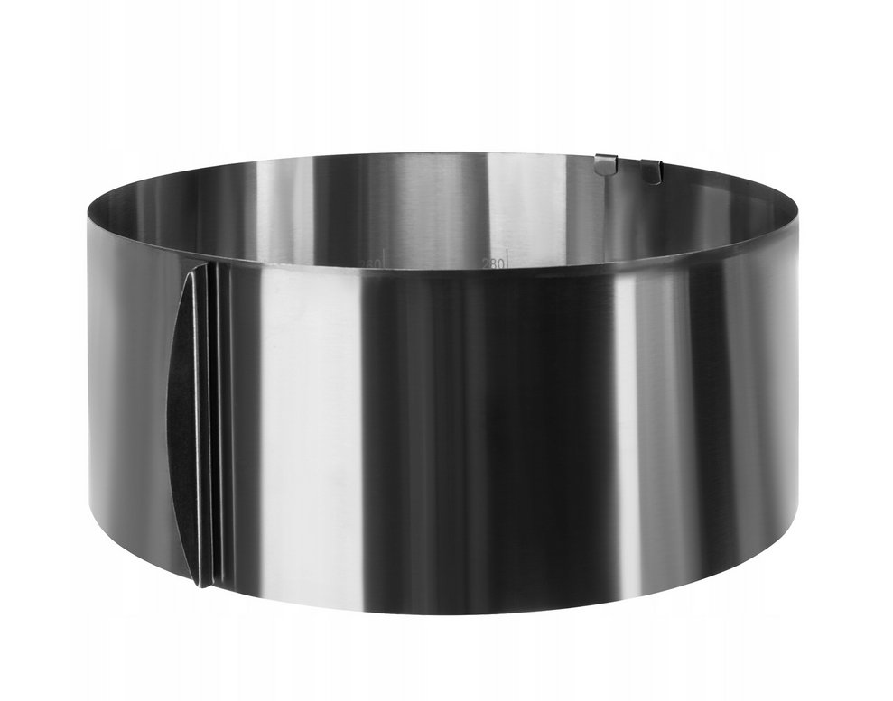 Vysoce kvalitní, nastavitelná, kulatá forma na pečení koláčů a dortů. Mimořádně důležitá při přípravě pečiva. Je vyrobena z nerezové oceli, díky čemuž je stabilní a snadno se čistí.