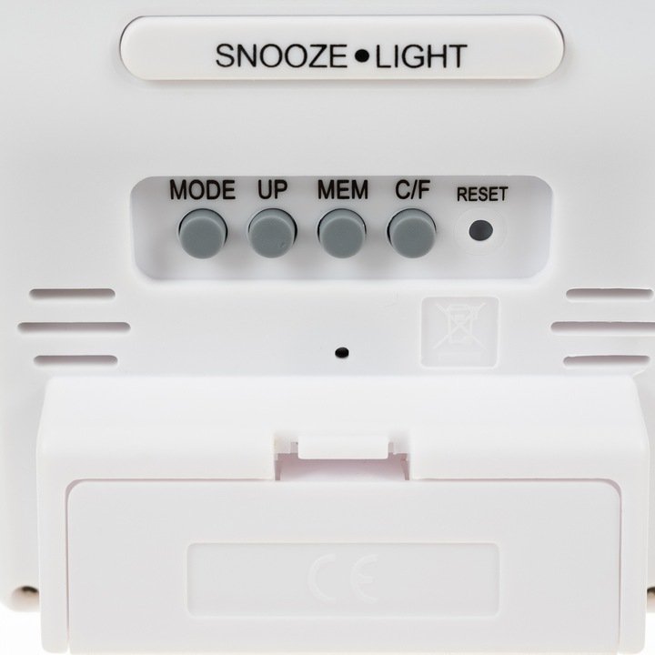 Teploměr s přehledným LCD displejem s krátkým modrým podsvícením měří vnitřní teplotu a vlhkost. Nechybí praktické hodiny s budíkem a kalendářem. Budík má funkci odložení o 8 minut.