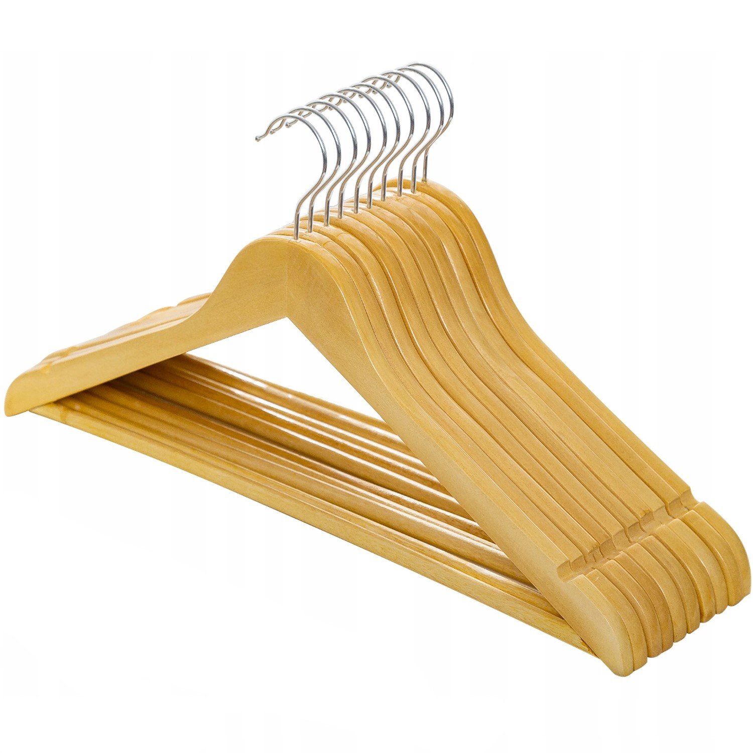 Elegantní a funkční sada 10 dřevěných věšáků spojuje estetiku s praktičností. Věšáky vyrobené z kvalitního masivního dřeva, pokryté bezbarvým lakem, dodají každému interiéru nejen eleganci, ale zajistí i vynikající odolnost a dlouhodobé používání.