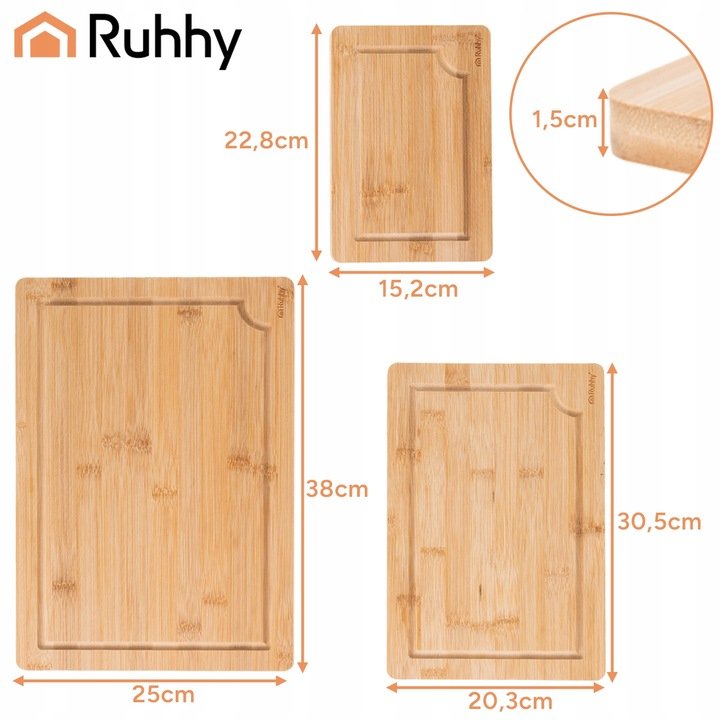 - Rozměry desky: 38x25x1,5cm; 30,5x20,3x1,5cm; 22,8x15,2x1,5cm
