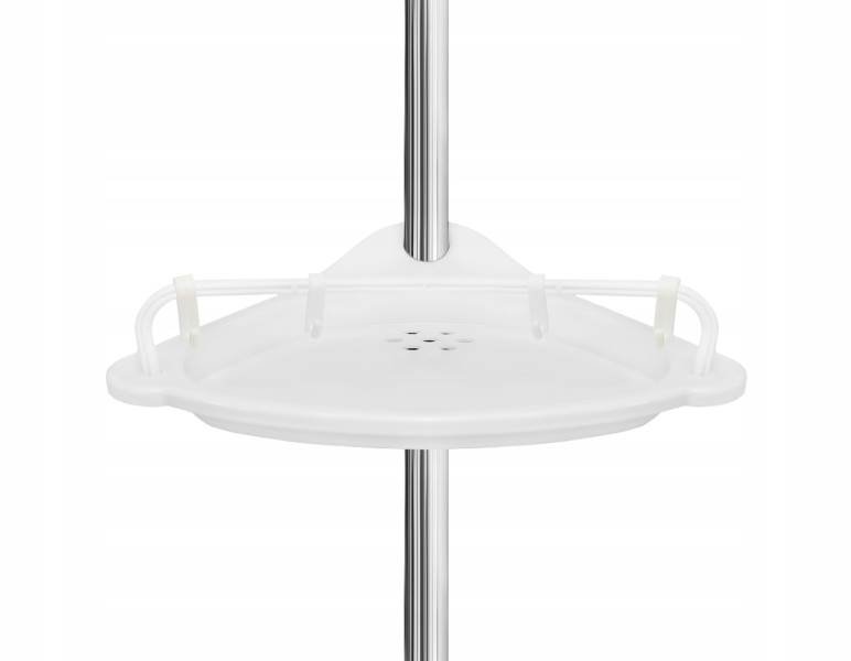 Rohová polička do sprchy na samo-rozporné tyči z nerezové oceli. Bez použití šroubu pohodlně upevníte teleskopickou tyč do nevyužitého koutu Vaši sprchy. 4 rohové odkládací misky, které jsou volně polohovatelné, poskytují dostačující odkládací plochu k odložení všech toaletních potřeb tak, že jsou vždy v dosahu Vaši ruky.