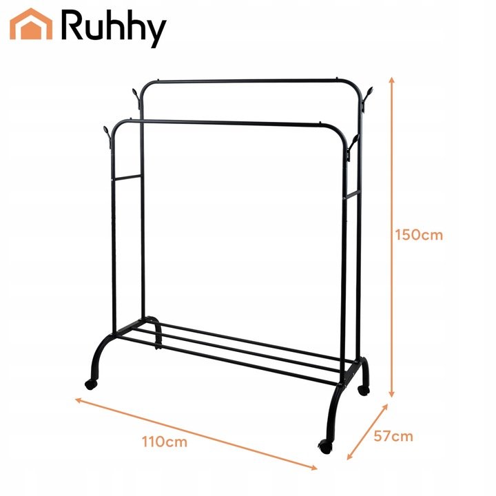 Dvojitý věšák na kabáty poskytuje dostatek prostoru pro oblečení a doplňky a díky aretačním kolečkům jej můžete snadno přemístit, kamkoli potřebujete.