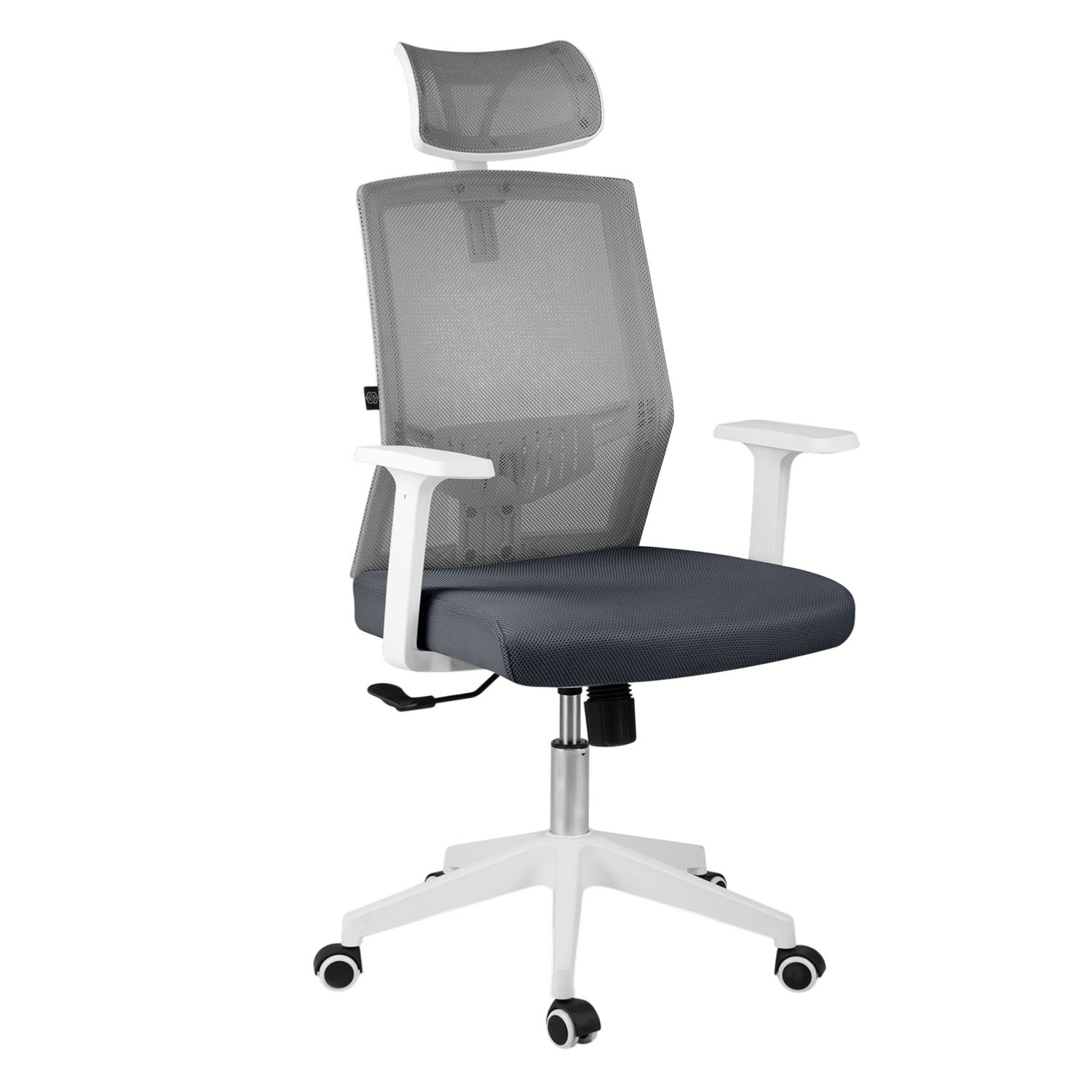 Ergonomické křeslo z mikrosíťky s houpáním, nastavitelným podhlavníkem a gumovými kolečky.