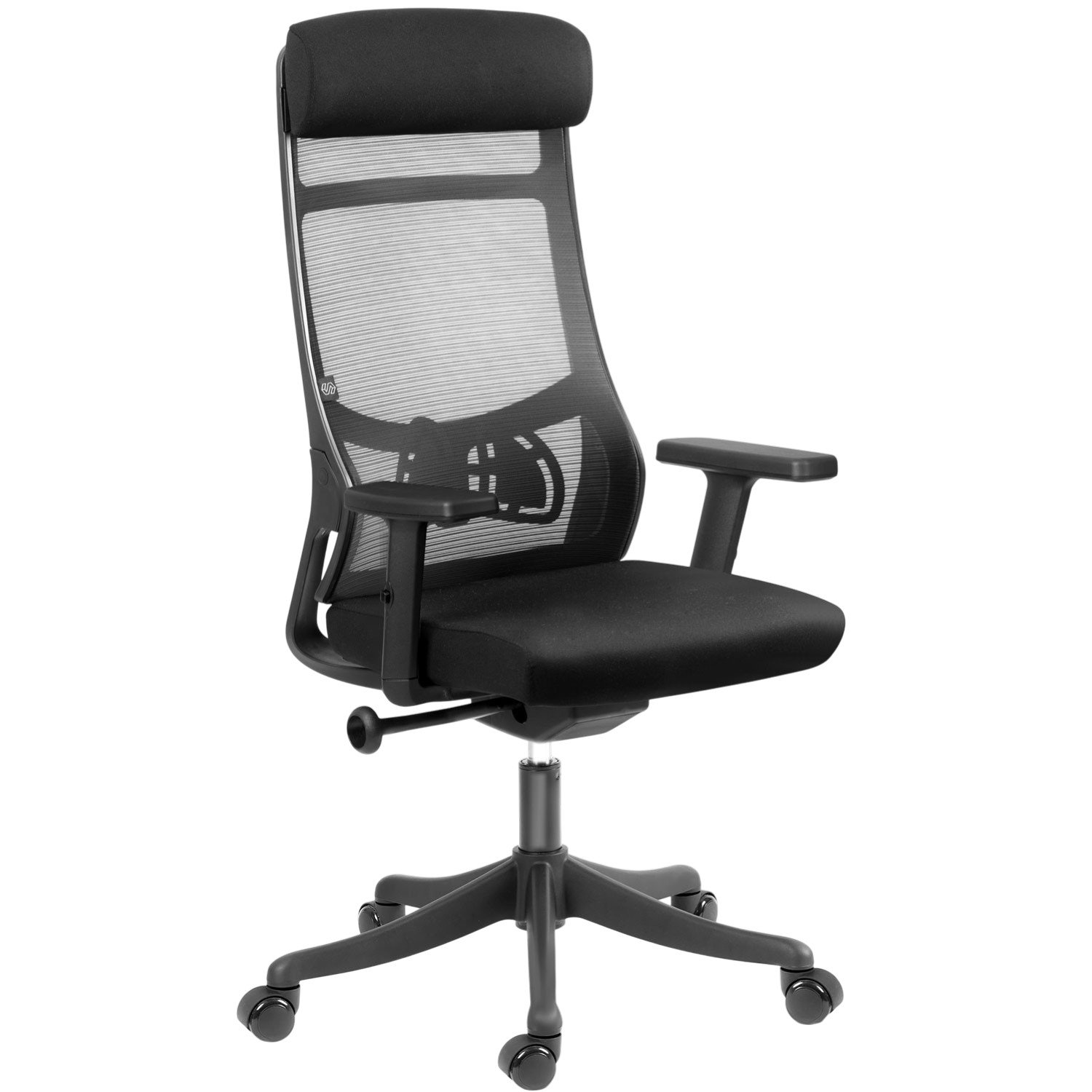 Černé kancelářské křeslo Sofotel Brema s mikrosíťovinou, SoftSwing houpáním a nastavitelnými područkami.