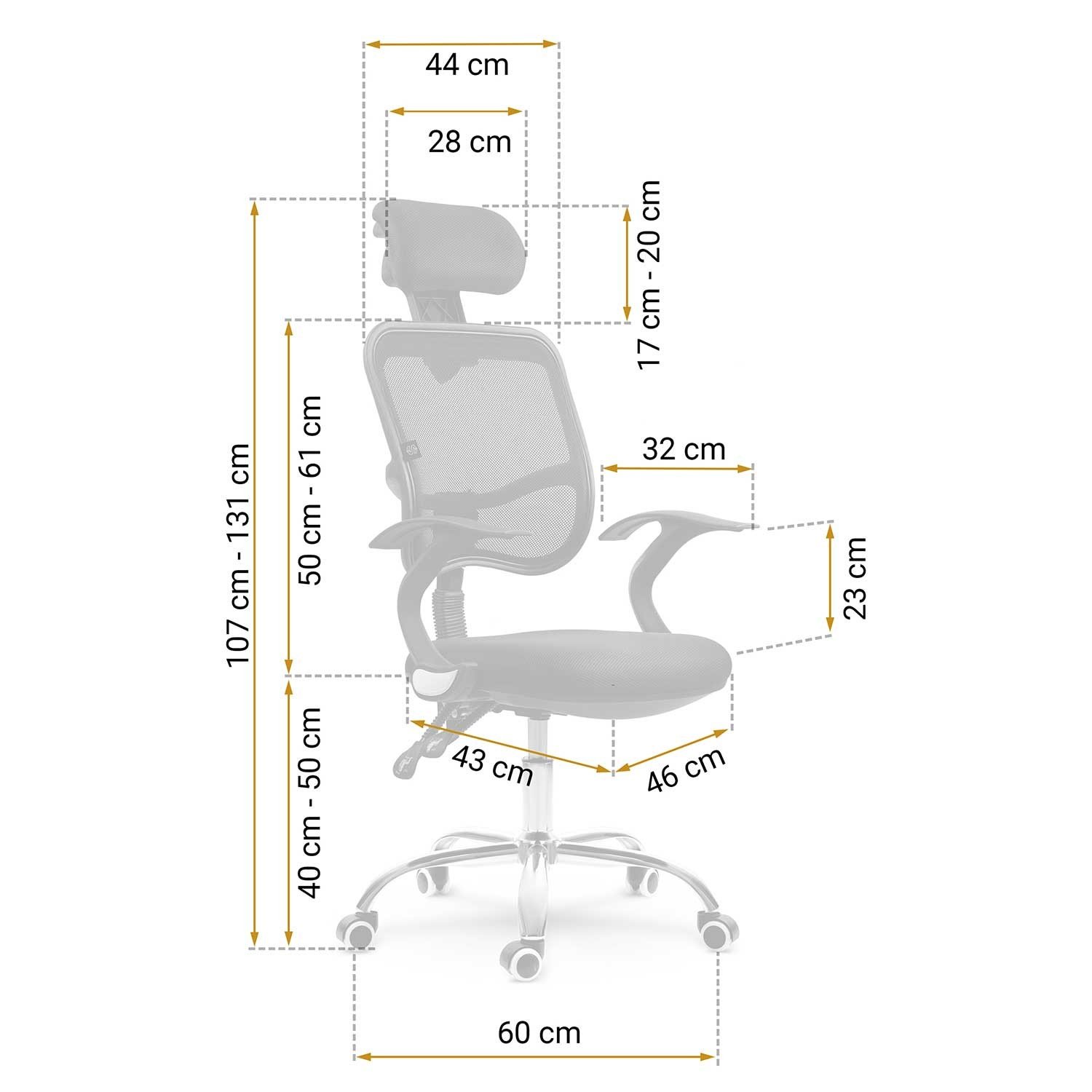 - Výška opěradla: 50–61 cm
