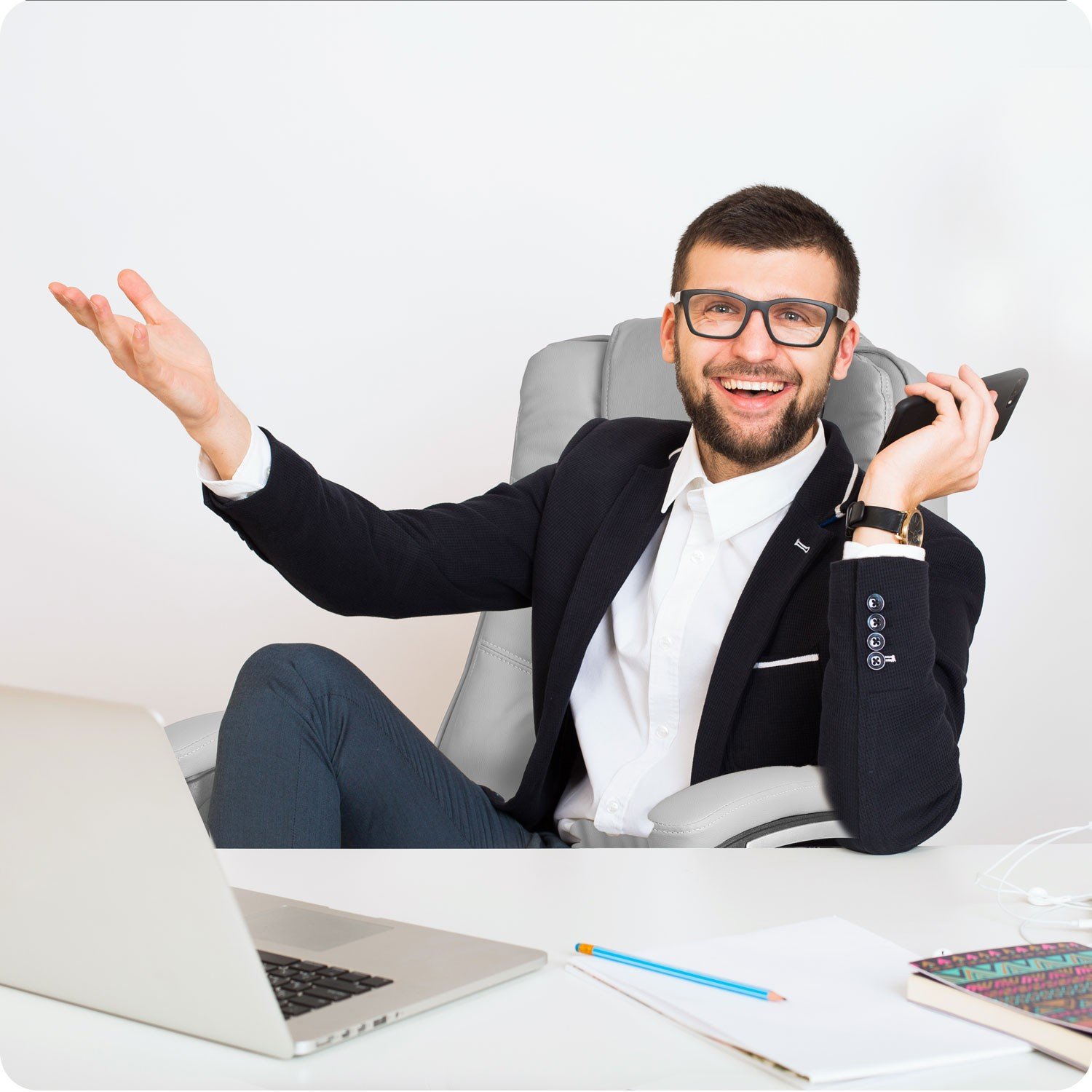 Komfortní kancelářské křeslo s dvojitým polstrováním, houpáním a chromovanou základnou. Nosnost 120 kg.