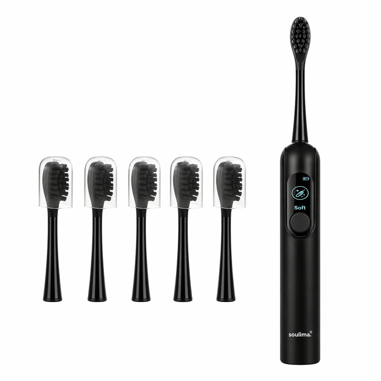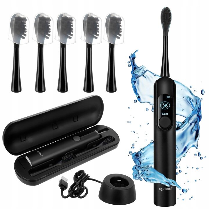 Soulima 26851 Sonický zubní kartáček + 6 hlavic, 90 000 ot./min, černý