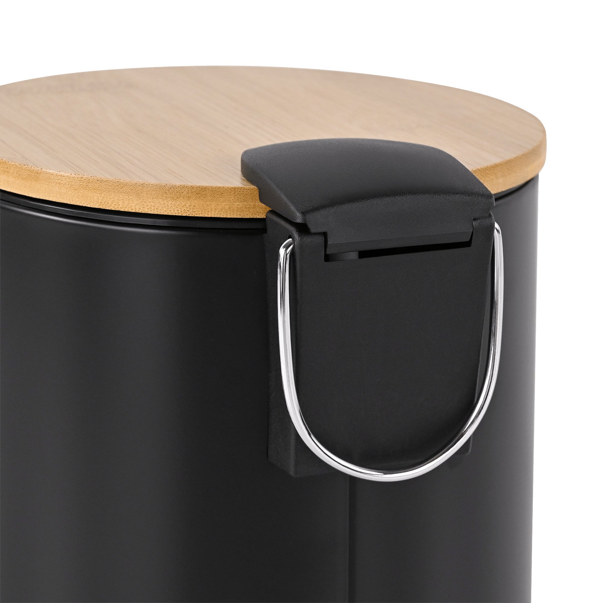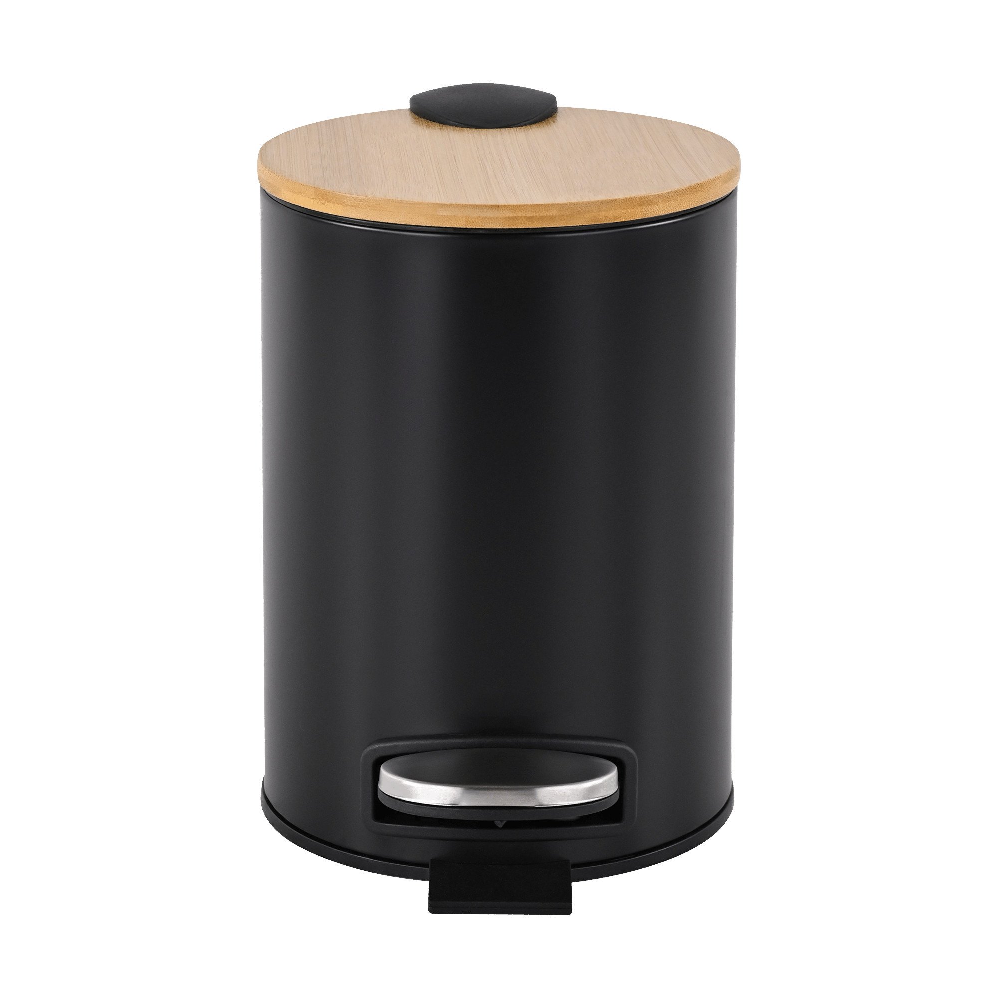 Koupelnový koš 3 l s pedálem, pomalým dovíráním a vnitřním kyblíkem. Matná černá + bambus.