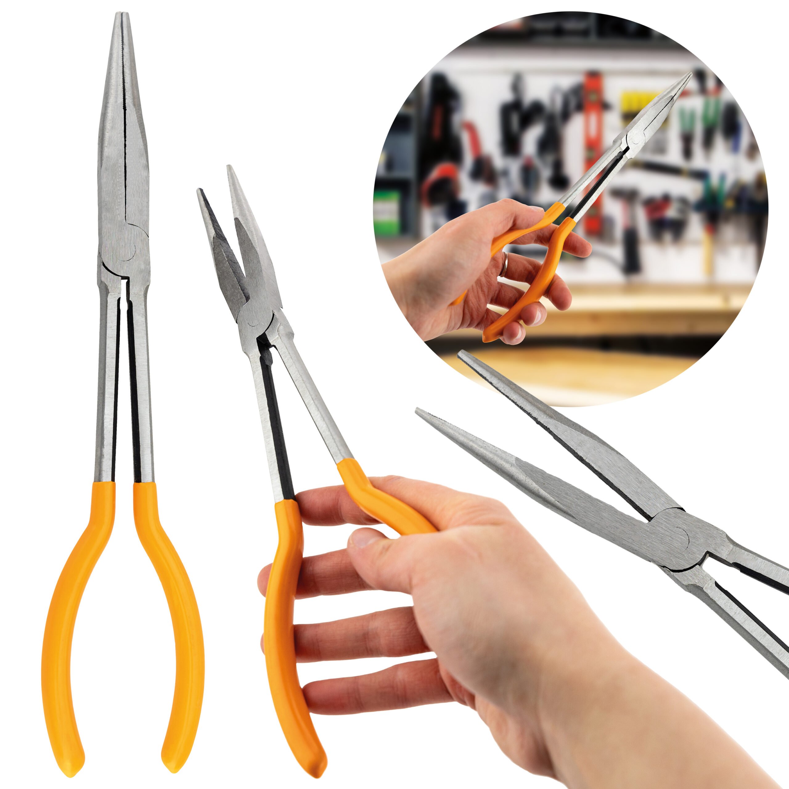 Velmi často při renovaci, kutilství nebo stavbě potřebujete nástroj, který vám pomůže provádět precizní práci na těžko dostupných místech. Dlouhé rovné kleště budou perfektním řešením díky svému rozsahu použití. Určitě dobře poslouží v každé dílně, garáži, studiu nebo i doma. Užitečné pro drcení, upínání, lisování, tvarování, montáž a seřizování, řezání drátů a práci v úzkých rozích s omezeným rozsahem pohybu.