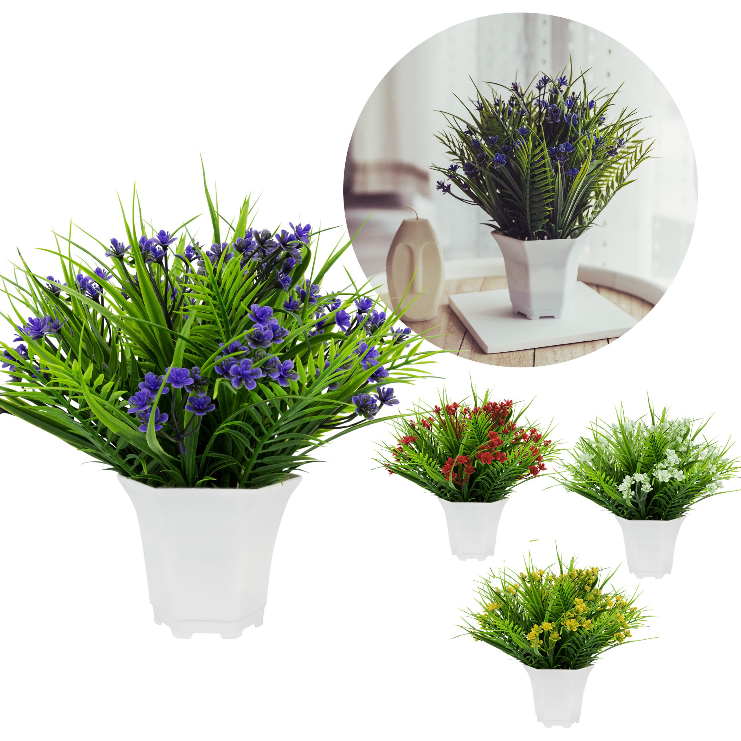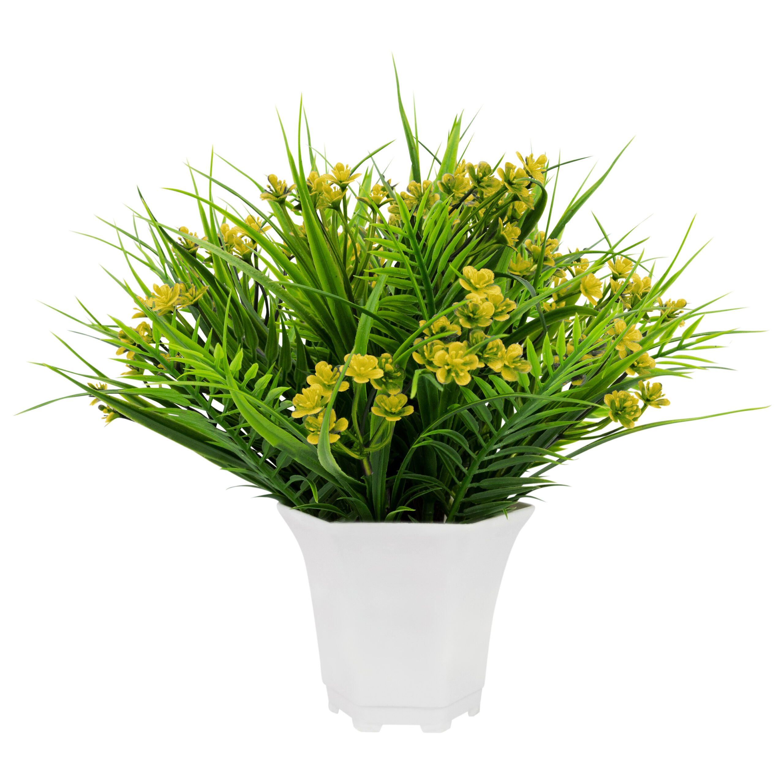 Vergionic 7041 Umělá tráva v květináči s květinami, 28 cm