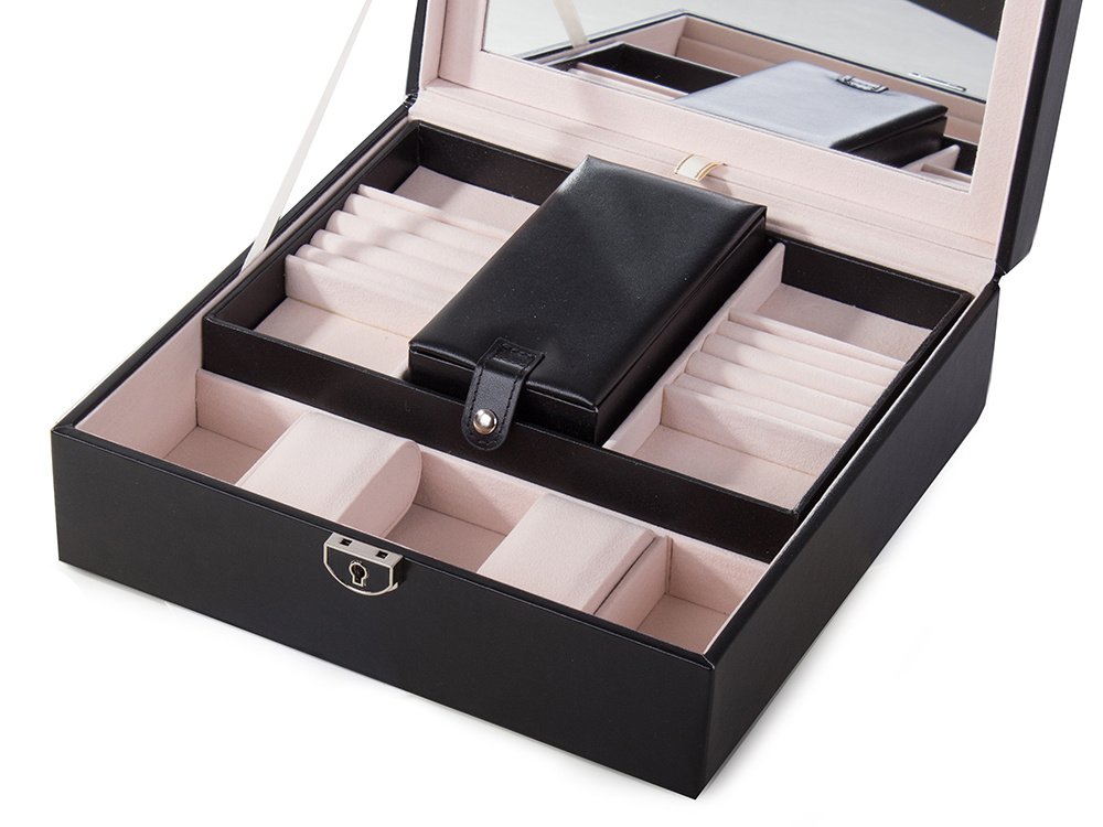 Ideální volba na dárek pro vaši přítelkyni / manželku / přítele. Atraktivní vzhled, chrání šperky před prachem a poškrábáním. Šperkovnice obsahuje kromě různorodých přihrádek a hlubokého šuplíku také praktické zrcátko. Uschováte do ní prsteny, náušnice, přívěsky i jiné doplňky.