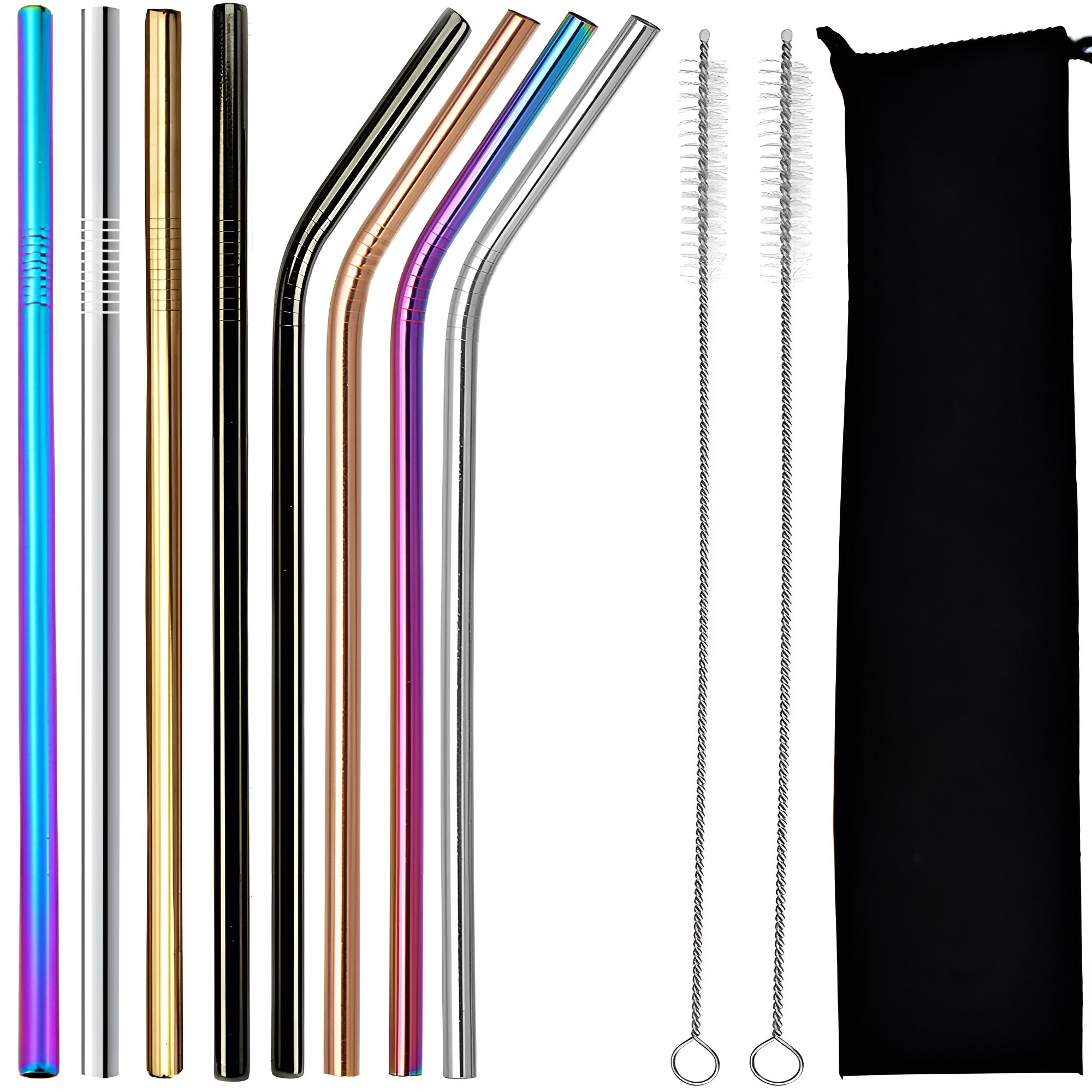 Verk 01635 Nerezová brčka 8 ks + kartáček na čištění barevné