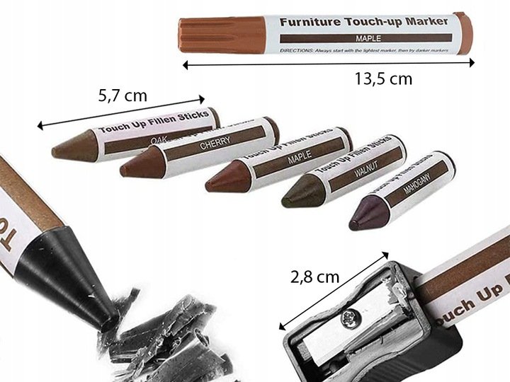 Univerzální sada pro rychlou a samostatnou opravu poškození panelů, nábytku, dveří a dalších výrobků ze dřeva a materiálů na bázi dřeva. Sada umožňuje snadnou opravu drobných defektů a škrábanců.