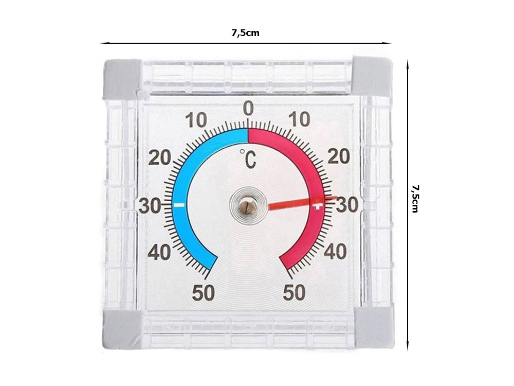 Má velký ciferník s přehlednými číslicemi. Měří teplotu ve stupních Celsia.