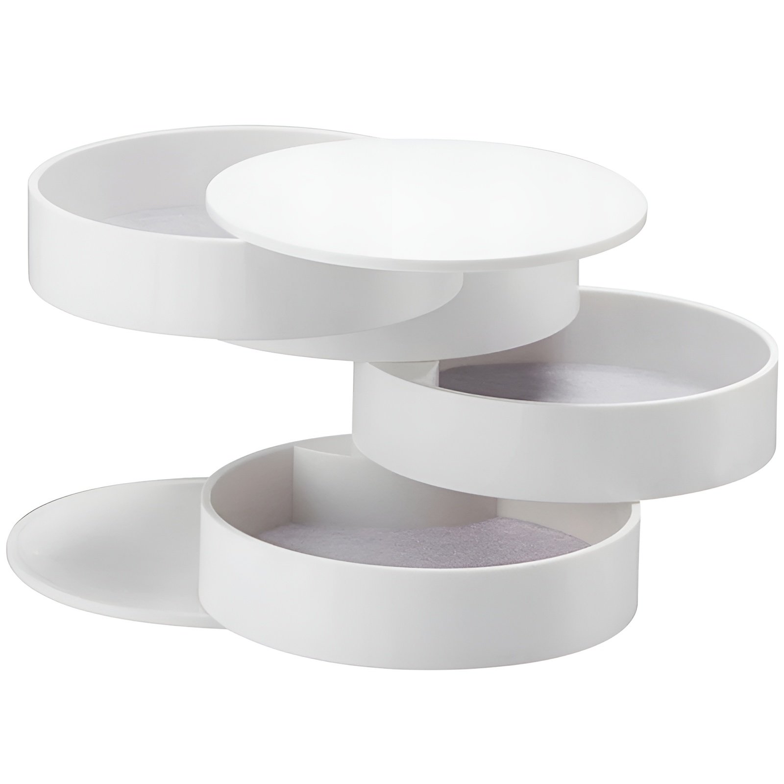 Organizace šperků bude jednodušší díky elegantní šperkovnici v atraktivním designu. Perfektně ji zakomponujete do jakéhokoliv interiéru. Šperkovnice obsahuje čtyři otočná patra. Vaše šperky tak zůstanou přehledně uložené a chráněné před prachem.
