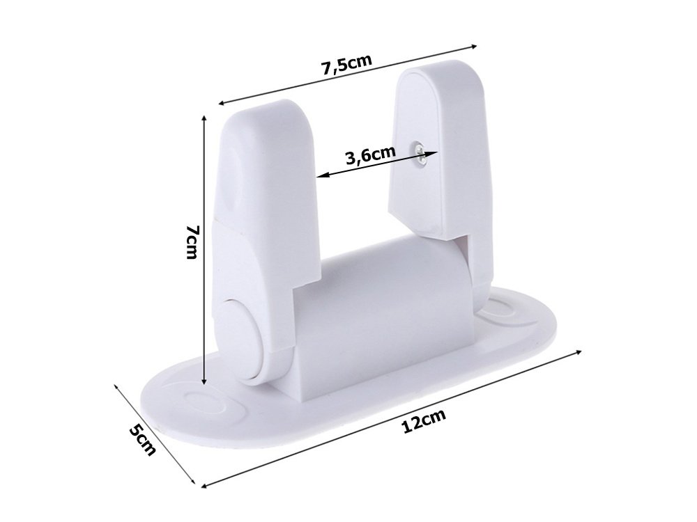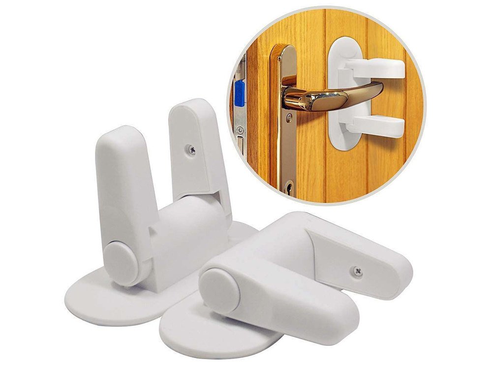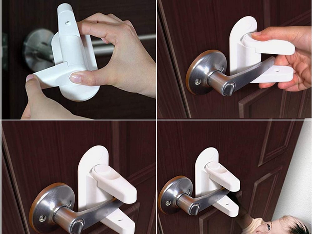 Ochrana kliky zabraňující otevření dveří nebo okna malými dětmi. Má velkou základnu, která umožňuje pevnou instalaci zabezpečení za kliku pomocí lepicí pásky. Zámek pevně drží na každé ploše dveří a rámu okna. Ramena vyčnívají až o 7 cm, což znemožňuje otevření rukojeti. Oboustranná tlačítka na ramenech umožňují rychlé uvolnění zámku a použití dveří určenými osobami.