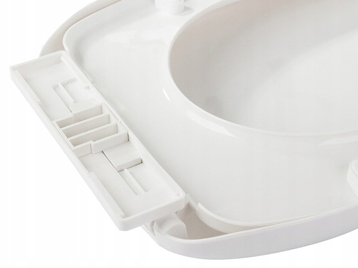 Univerzální sedátko se díky stavitelným úchytům se snadno přizpůsobí mnoha typům mís.