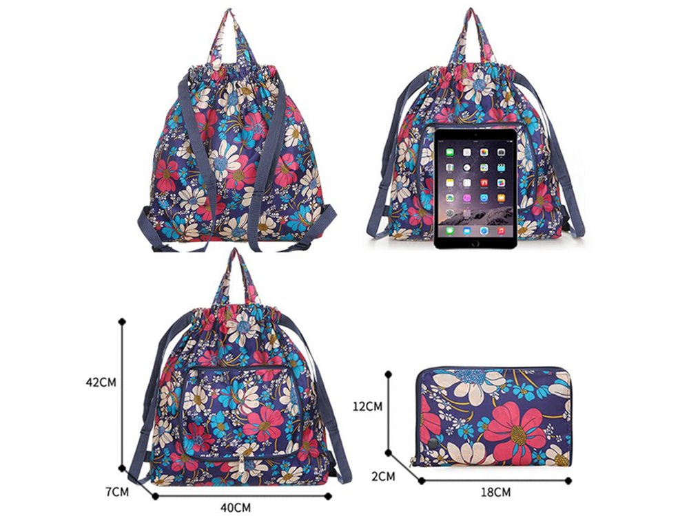 Batoh je vyroben z lehkých a odolných materiálů, ideální na krátké výlety, nákupy, nebo jako záložní batoh při delších cestách. Po složení zabírá málo místa.