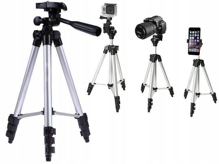 Tříosa hlava – umožňuje svislé fotografování. Univerzální závit 1 / 4' můžete používat pro všechny modely kamer a foťáků. Hliníková vodicí lišta a centrální sloupec. Čtyřdílné nohy mají snadné k použití blokující patentky. Stativ je hliníkový - pevná konstrukce a estetický vzhled.