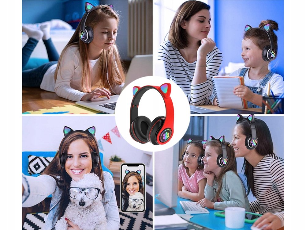 Pohodlná, bezdrátová sluchátka do uší pro děti. Charakteristické kočičí uši s LED osvětlením umožní vašemu dítěti vyniknout mimo prostředí. Použití vysokorychlostního modulu Bluetooth 5.0 umožňuje pohodlné používání zařízení (dosah až 10 metrů). Napájeno vestavěnou baterií.