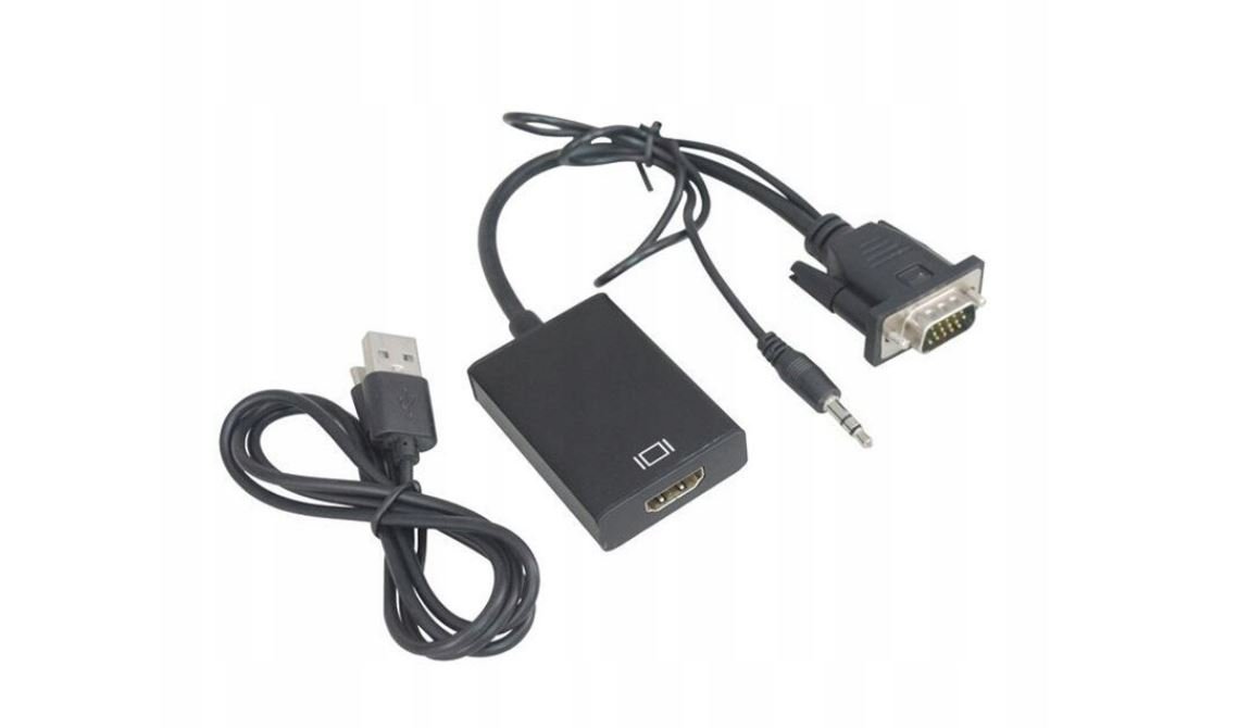 Kabel s adaptérem na každé straně pro VGA a HDMI.