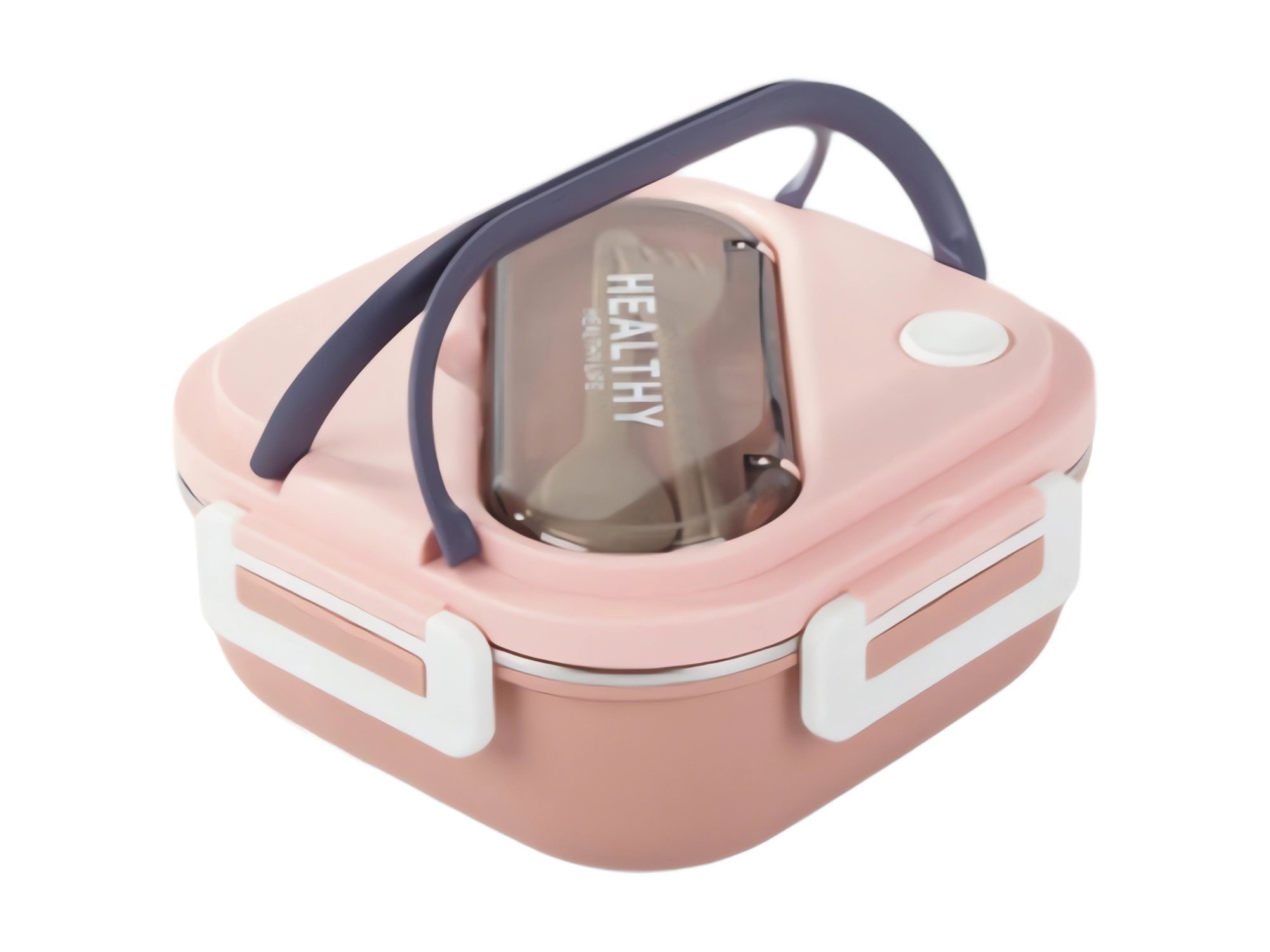 Verk 07332 Svačinový box s přihrádkami a příborem 1000 ml, růžový
