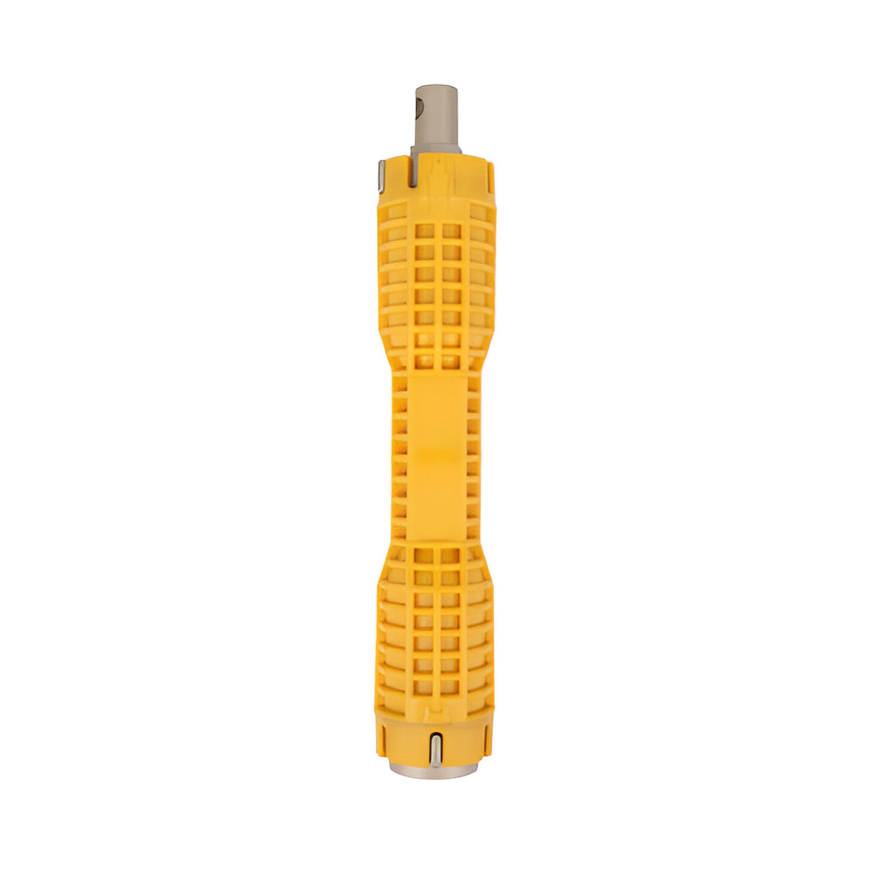 Univerzální nástrčný klíč pro instalaci baterií a dřezů. Usnadňuje montáž a demontáž dřezů, kohoutků a ohřívačů vody. Průměr otvorů jazýčků je 34 mm a 40 mm. Speciální překrytí se třemi šířkami (21 mm / 23,5 mm / 28 mm). Protiskluzová rukojeť usnadňuje používání nástroje. Jednoduchá a pevná konstrukce zajišťuje dlouhou životnost klíče.