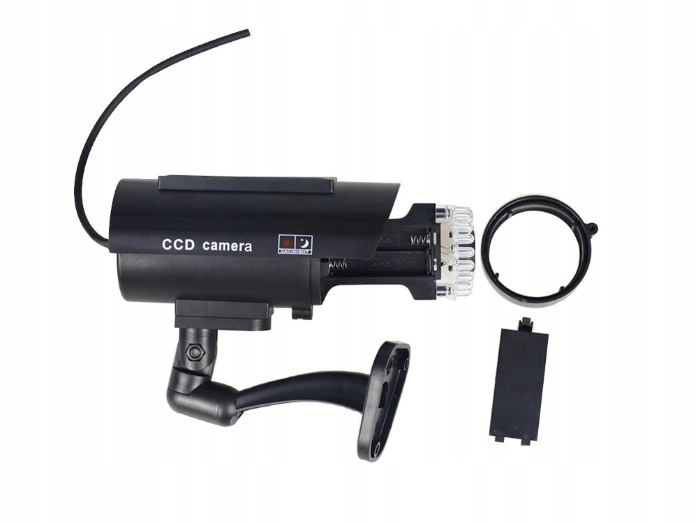 Maketa kamery je vysoce kvalitní imitací skutečné CCTV sledovací kamery. Blikající červená LED působí dojmem 24/7 monitorování.