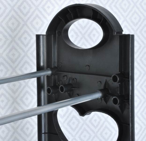 Univerzální stojan na boty se skládá ze čtyř spojených bloků a 8 kusů trubek pro 12 párů bot. Stojan lze libovolně rozšířit směrem nahoru nebo do stran.