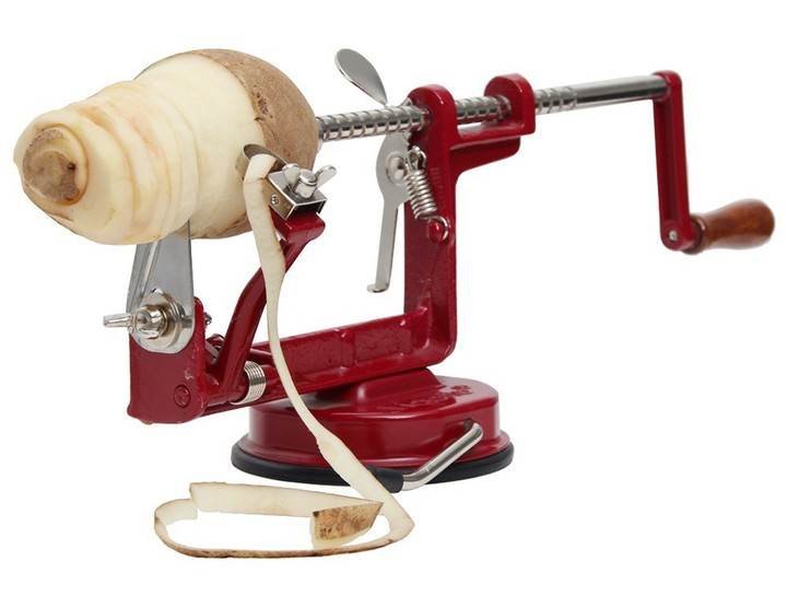 S naším multifunkčním loupačem bude každé zpracování ovoce snadnější a především mnohem rychlejší. Už nemusíme trávit zavařováním celé dny, nejnáročnější část, příprava ovoce, bude dílem několika okamžiků. Strojek na zpracování ovoce lze velmi snadno připevnit k pracovní desce stolu pomocí pevné vakuové přísavky. Nepotřebujete tedy dotahovat žádné šrouby, strojek pevně stojí a nekymácí se. Strojek je velmi univerzální, lze ho použít k odpeckování ovoce, zbavení ovoce jadřinců, stejně jako k loupání a krájení jablek, hrušek či zeleniny jako je okurka nebo ředkvička. Neocenitelný pomocník při loupání brambor. Nůž lze individuálně nastavit podle velikosti zpracovávaného ovoce či zeleniny.