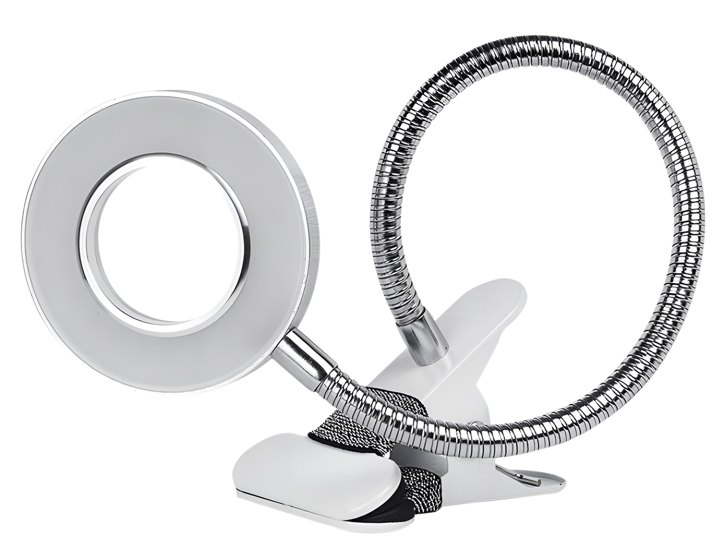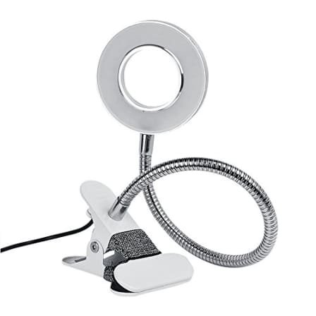 Má velký a pevný klip vyplněný houbičkou, takže nezabírá místo na pracovním stole a nepoškrábe ho. Napájí se pomocí USB kabelu.