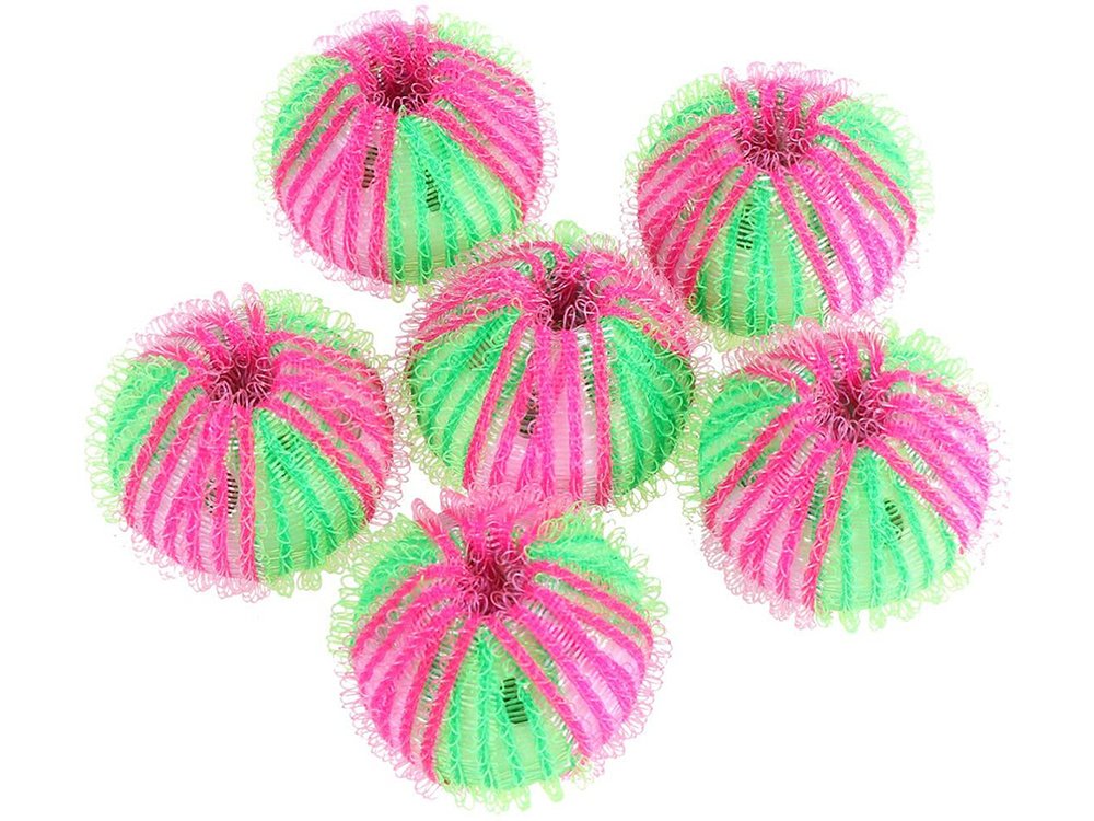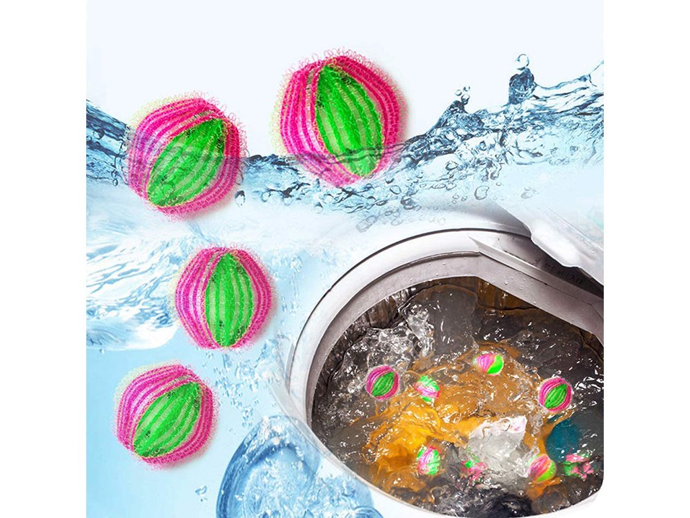 Velké prací koule vám pomohou efektivním a jednoduchým způsobem zbavit se vlasů a srsti z vašeho oblíbeného oblečení. Stačí je vložit do bubnu pračky a speciální povrch koulí- suchý zip- zachytí veškeré obtížné nečistoty bez poškození i těch nejjemnějších tkanin.
