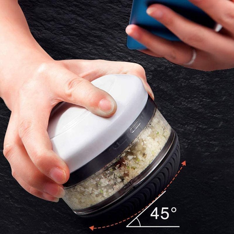 Stačí do něj vložit oloupané stroužky česneku nebo jiné zeleniny, párkrát ho zatočit a je hotovo.
