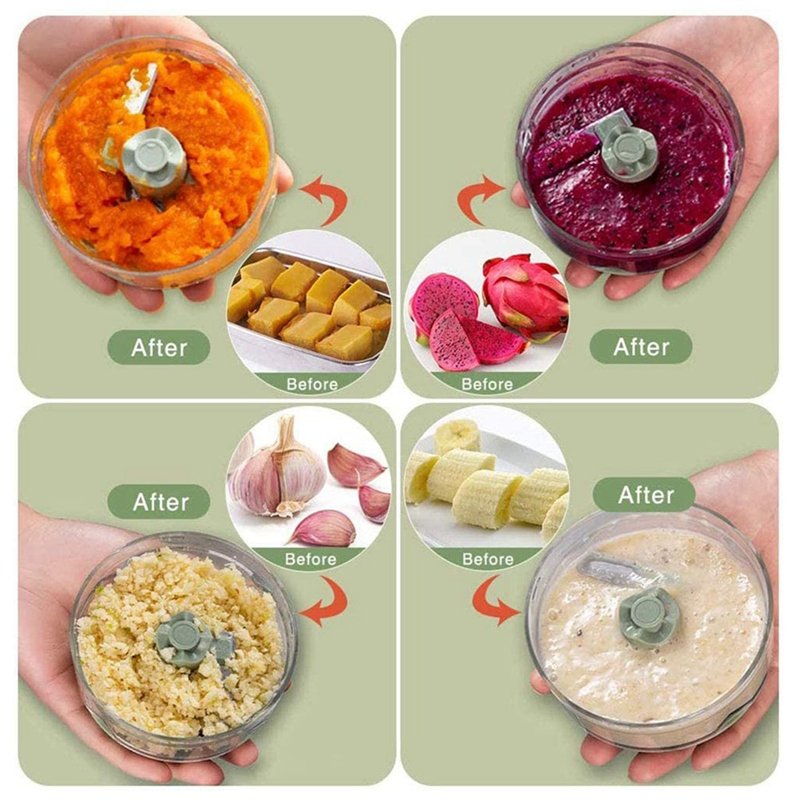 Funguje dobře na sekání a míchání potravin, jako je zázvor, česnek, pepř, mrkev, cibule, ořechy, bylinky a malé množství masa bez kosti.