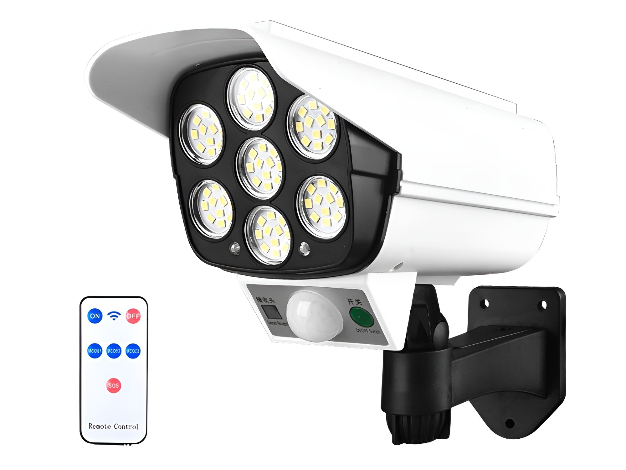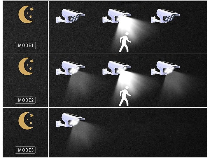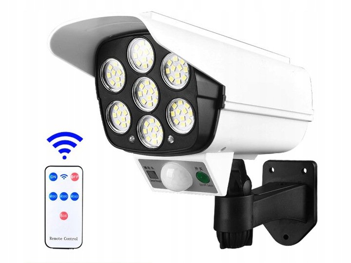 Kvalitní atrapa kamera je zařízení napájené solárním panelem, které zaručuje osvětlení bez přídavného zdroje energie. Je vybavena velmi jasným 77 COB LED panelem se silným paprskem světla.