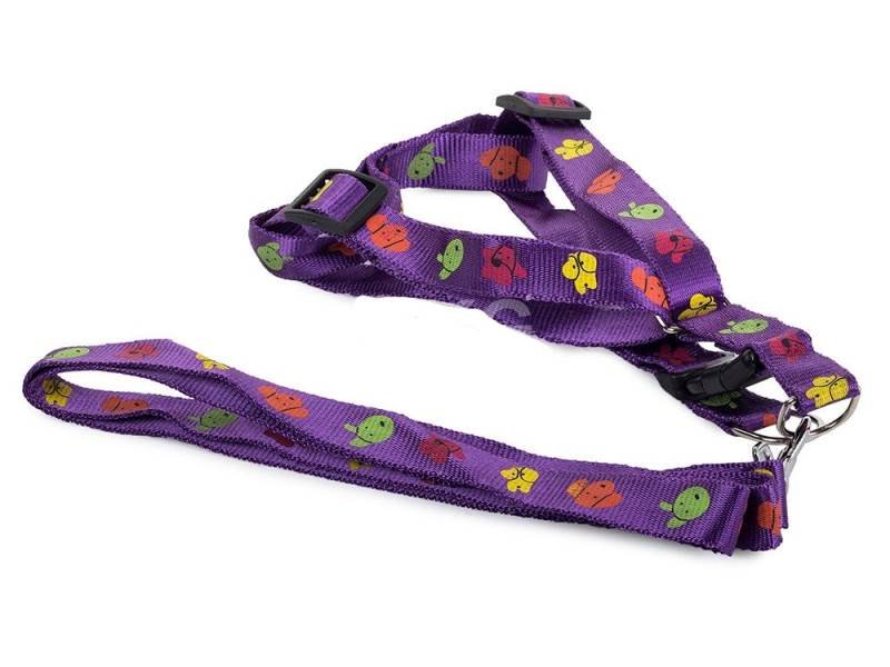 Verk 19125 Nylonový postroj s vodítkem pro psa 135 x 2,5 cm fialový