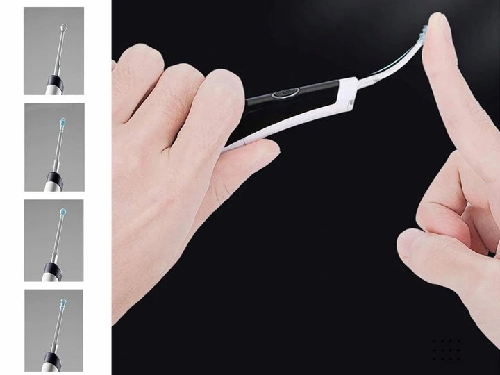 Čistič je vybaven lampičkou, která osvětluje čištěná místa v boltci a pružnými silikonovými koncovkami, které se přizpůsobí každému uchu.