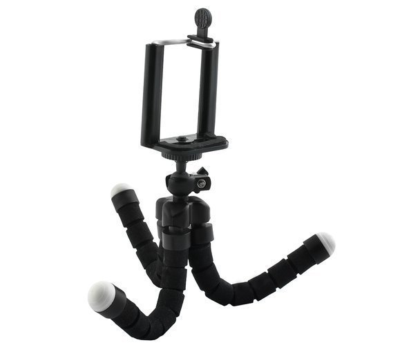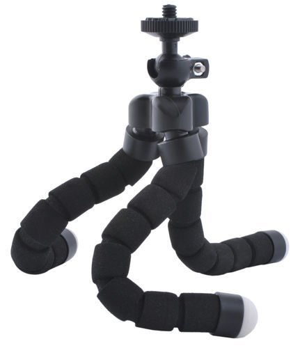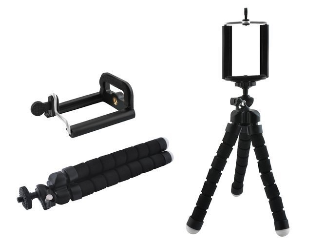Držák se stativovým závitem (který lze připevnit na všechny druhy stativů) má nastavitelné nožky, které lze různě ohýbat, stativ tak připevníte na většinu míst.
