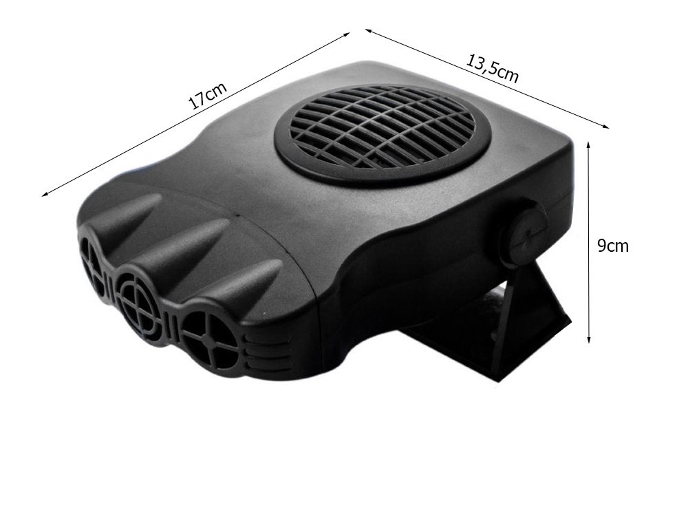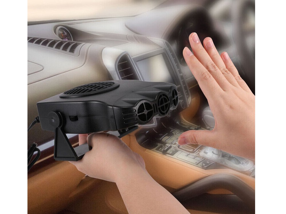 Mini ohřívač čelního autosklaje napájen ze standardní 12V autozástrčky, takže je ideálním zařízením pro chladné nebo horké dny.
