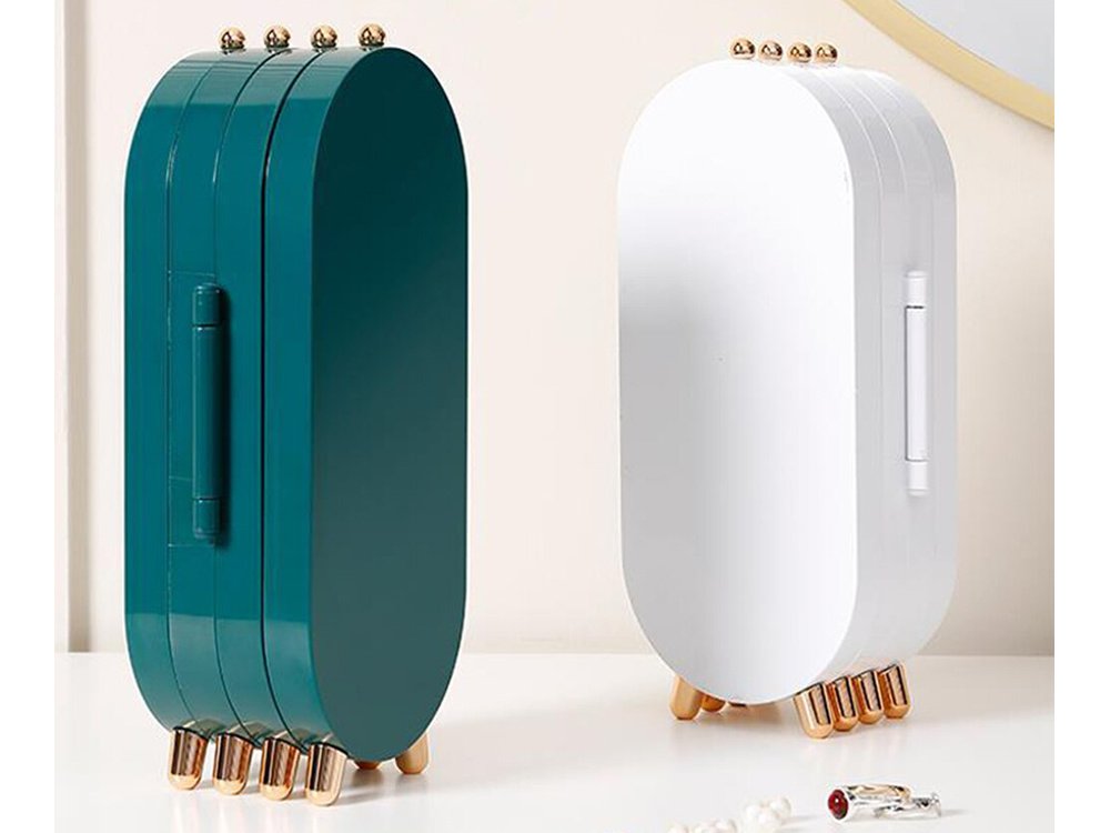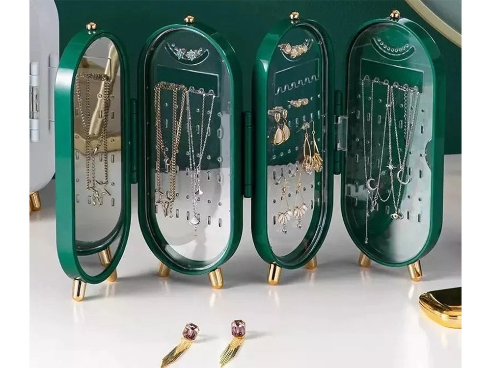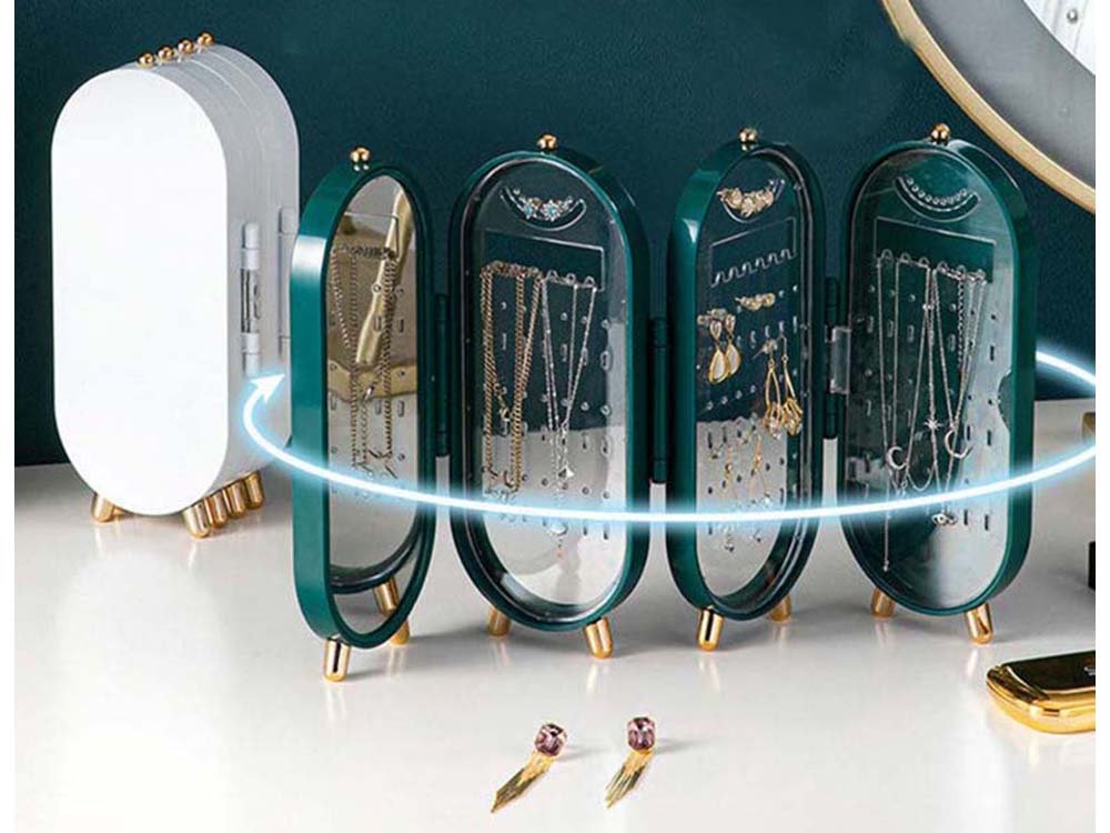 Krabice se skládá jako harmonika. Ve třech jejích částech je místo pro různé šperky, zatímco ve čtvrté části je velké zrcadlo.