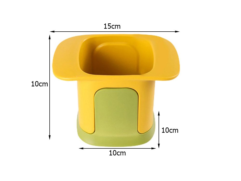 Stačí dovnitř vložit např. bramboru a silně přitlačit a čepele ji snadno rozdělí na kousky. Kráječ je ideální i pro krájení další zeleniny a ovoce jako je cuketa, cibule, rajčata, okurka, paprika, jablko nebo hruška. Zařízení se velmi snadno používá a čistí.