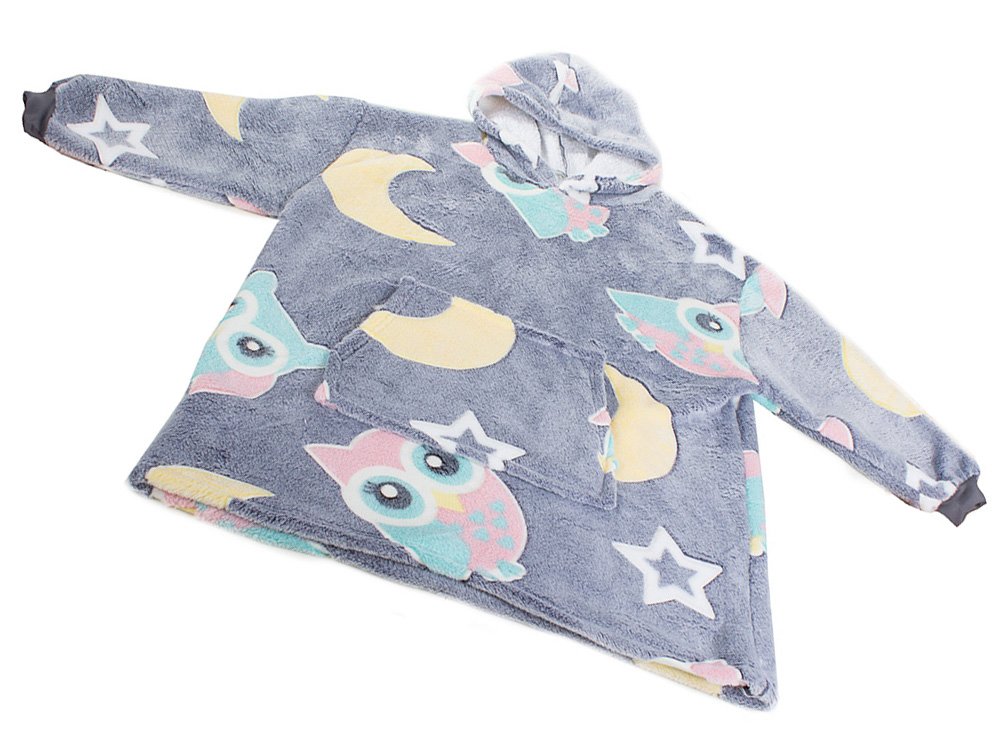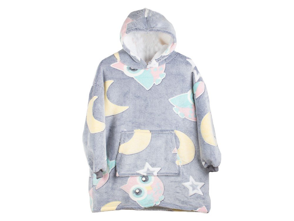 Verk 24305 Svítící plyšová mikina s kapucí sova - pro děti šedá