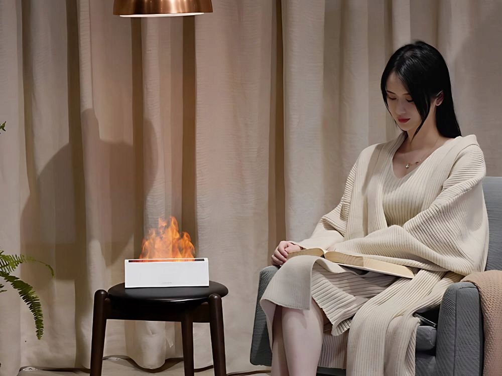Tento moderní aromatický difuzér kombinuje relaxační efekt plamene s možností aromaterapie a zvlhčování vzduchu.