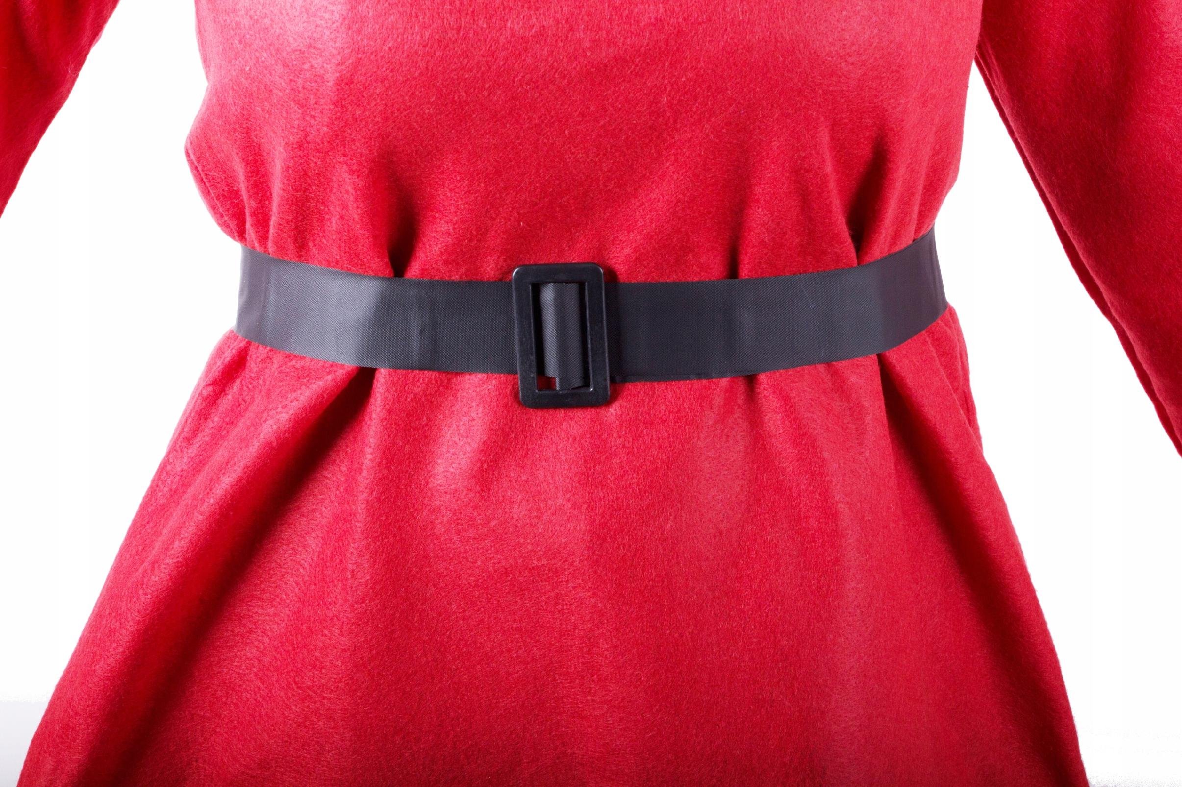 Set se skládá ze šatů, černého pásku a klobouku. Vše v jednolité červené barvě. Uplatní se jak doma, tak ve školce, na plese či jiných speciálních akcích. Šaty se zavazují vzadu stuhou.